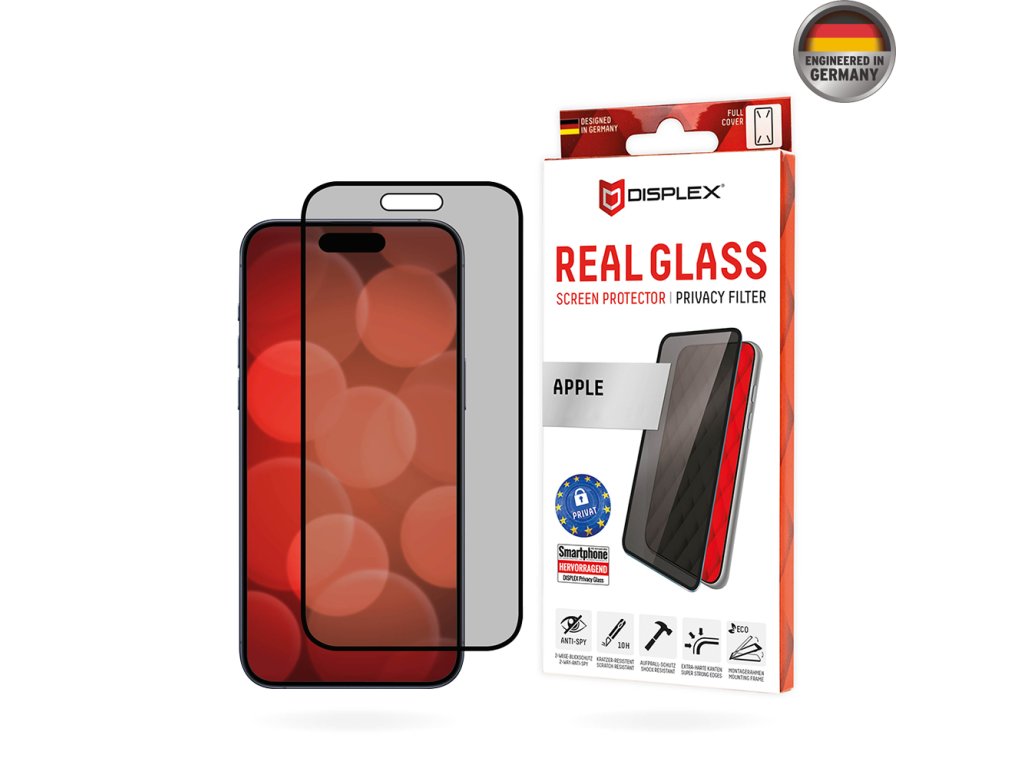 Displex - Premium Real Glass Privacy Full Cover - iPhone 16 - Black