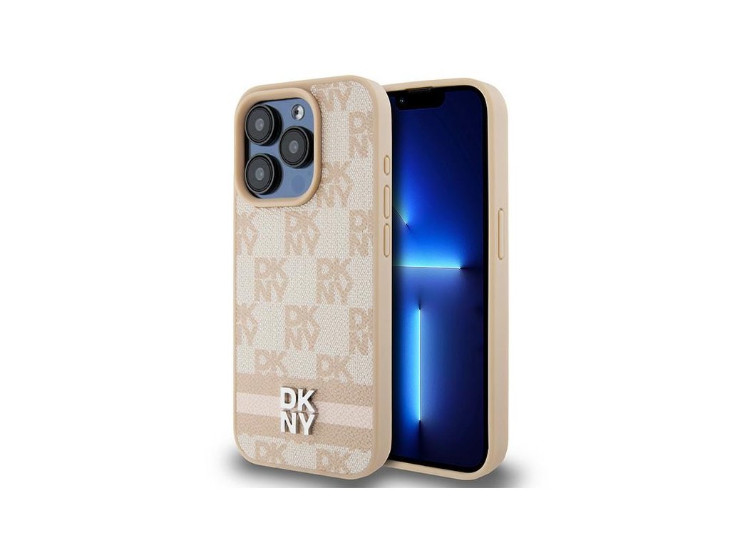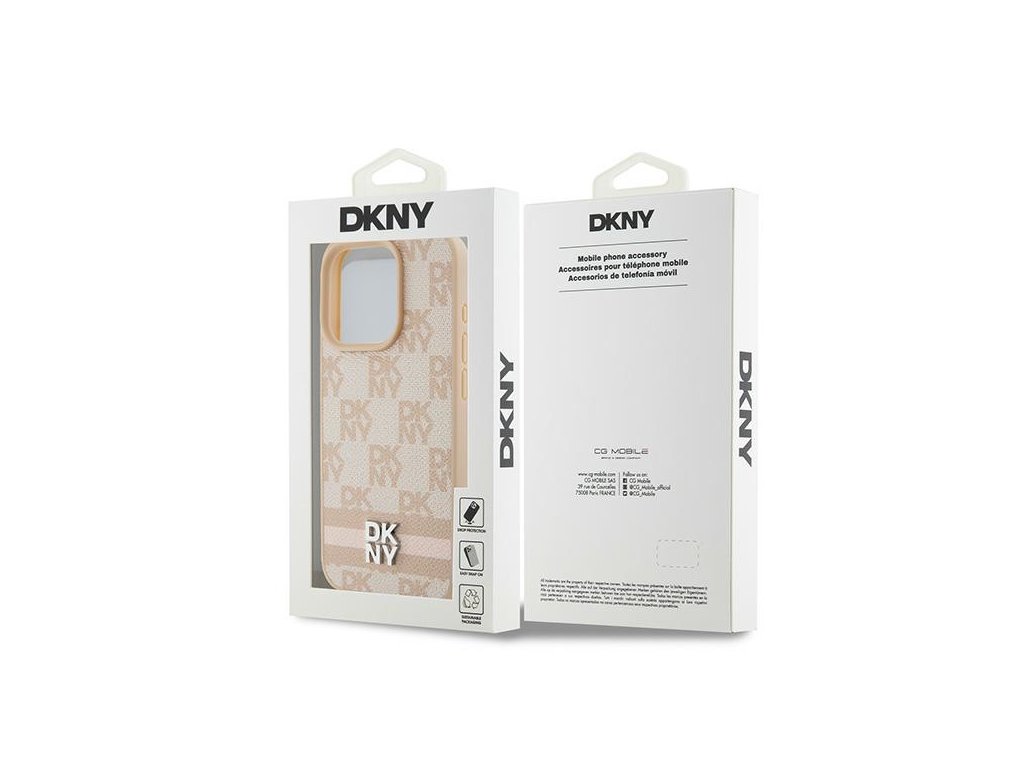 DKNY - Leather Checkered Mono Pattern & Printed Stripes (DKHCP15LPCPTSSP) - iPhone 15 Pro - Pink