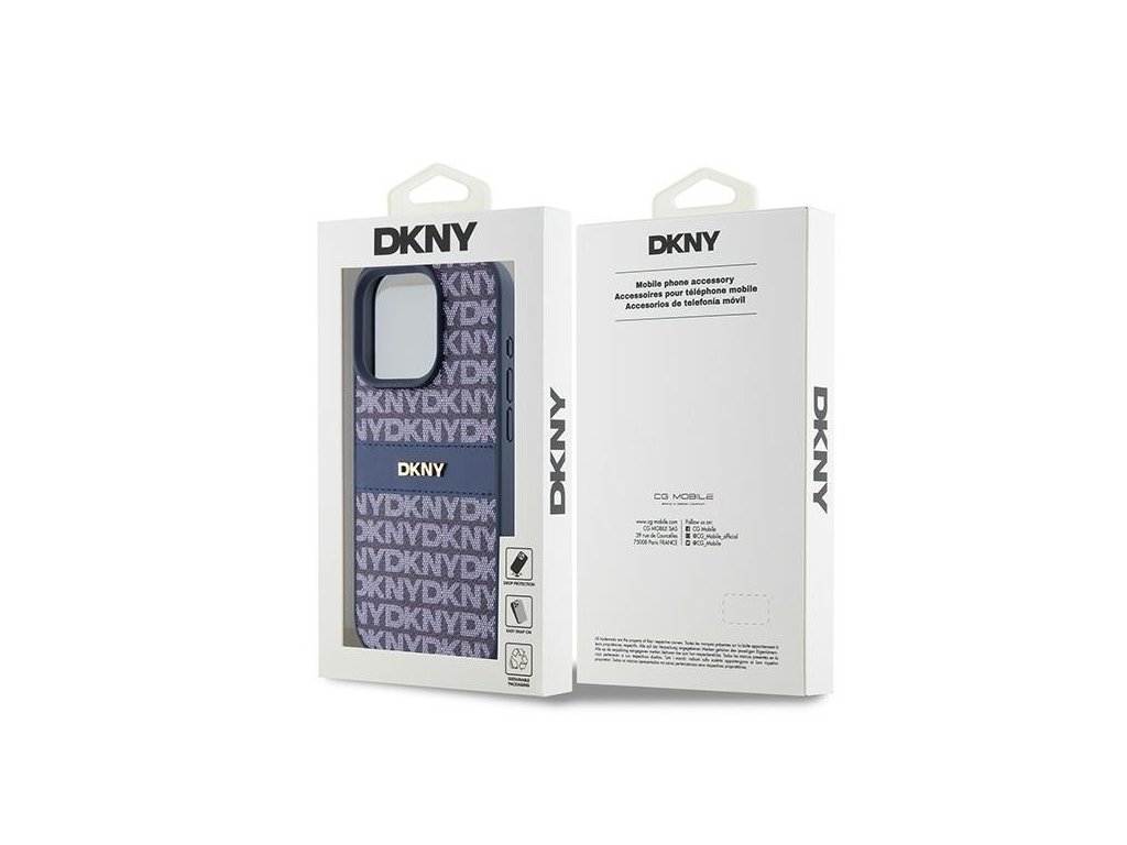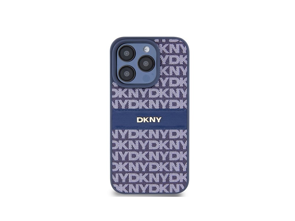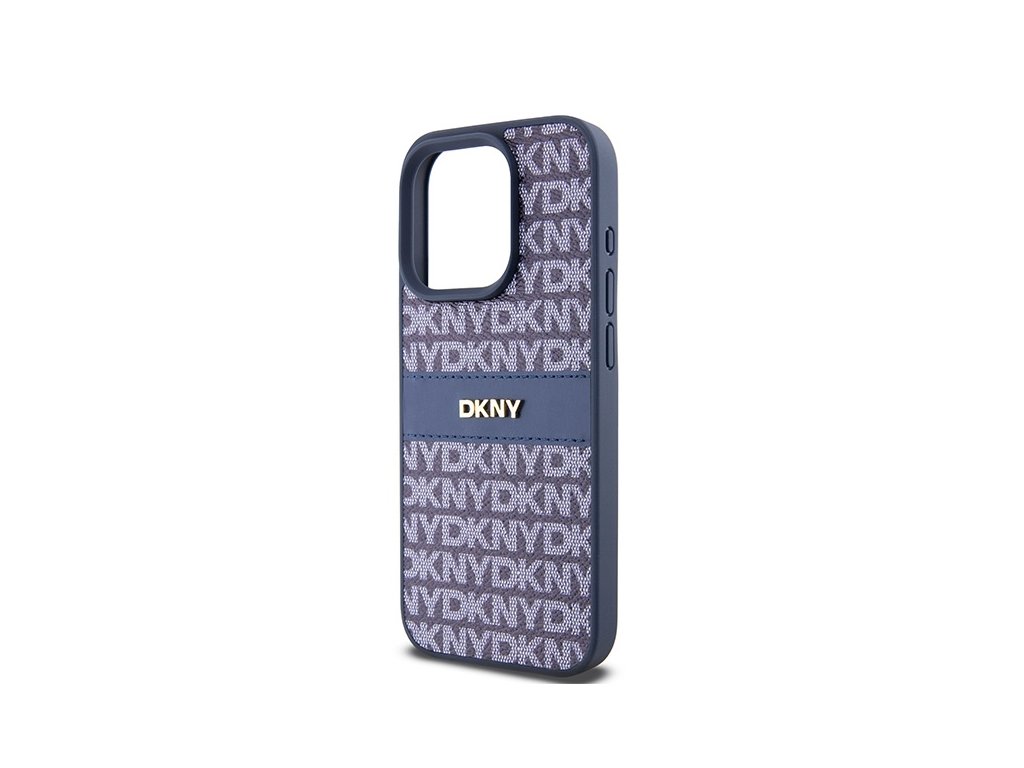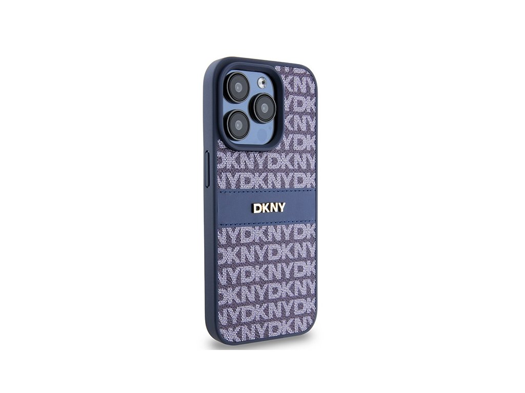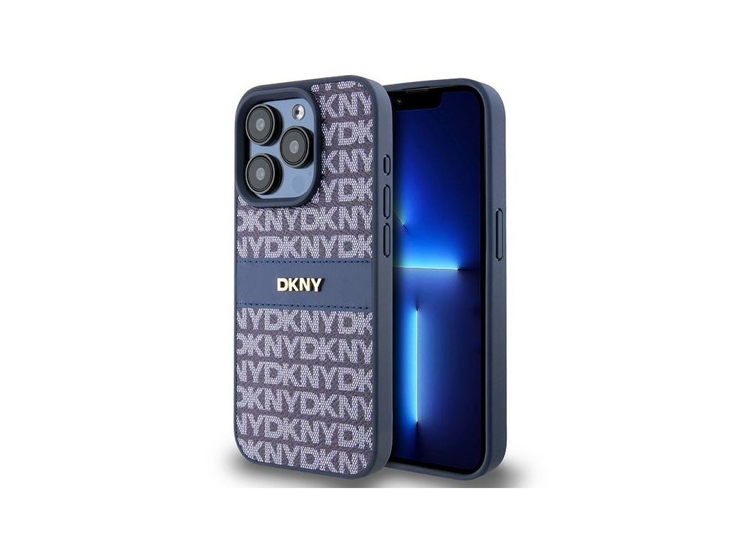 DKNY - Leather Mono Stripe & Metal Logo (DKHCP15LPRTHSLB) - iPhone 15 Pro - Blue