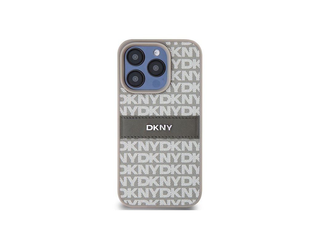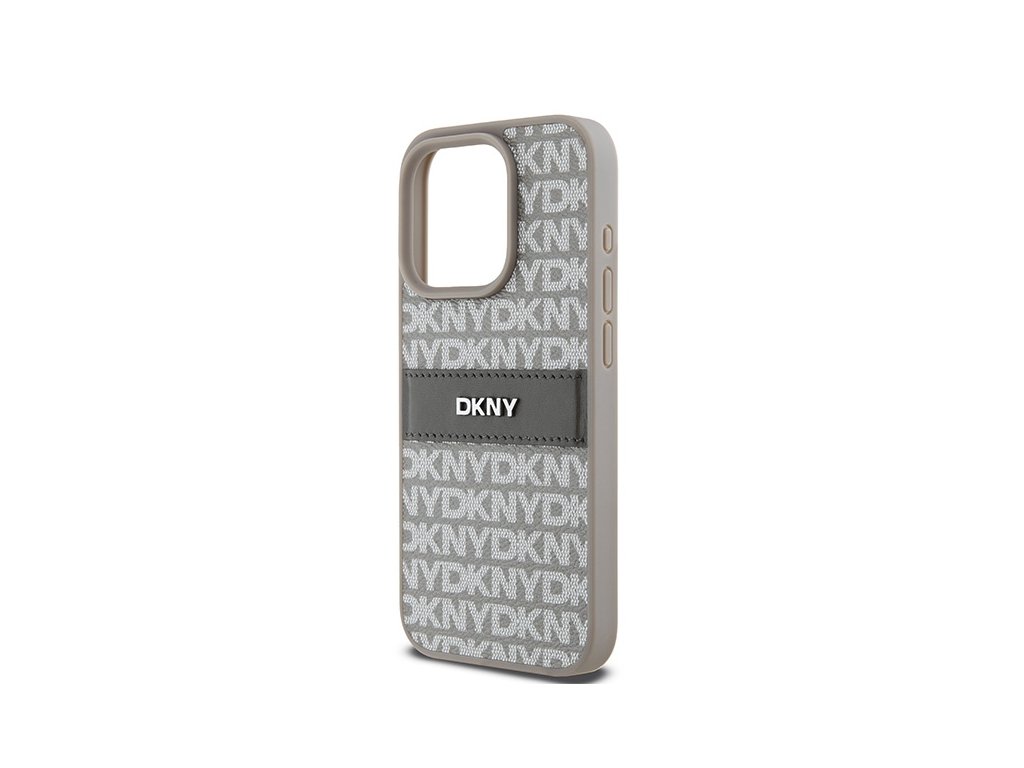 DKNY - Leather Mono Stripe & Metal Logo (DKHCP15LPRTHSLE) - iPhone 15 Pro - Beige