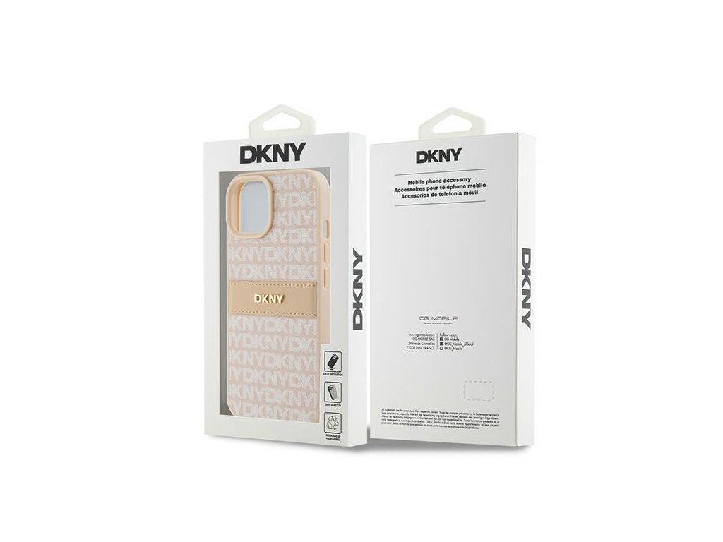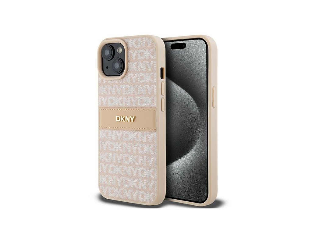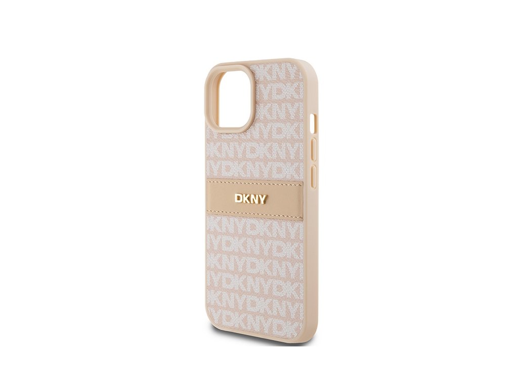 DKNY - Leather Mono Stripe & Metal Logo (DKHCP15SPRTHSLP) - iPhone 15 - Pink