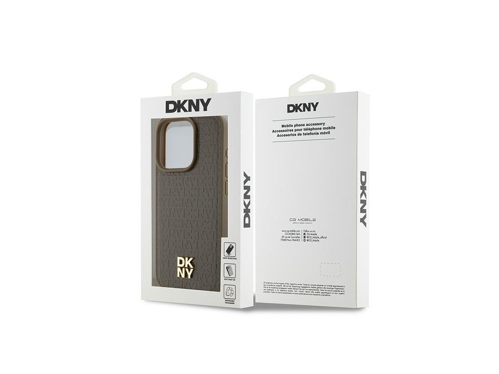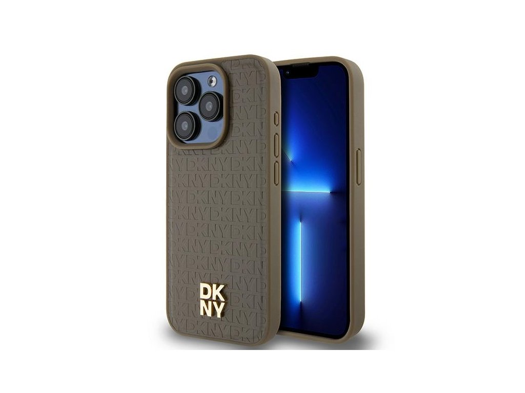 DKNY - Leather Monogram Pattern Metal Logo MagSafe (DKHMP15LPSHRPSW) - iPhone 15 Pro - Brown