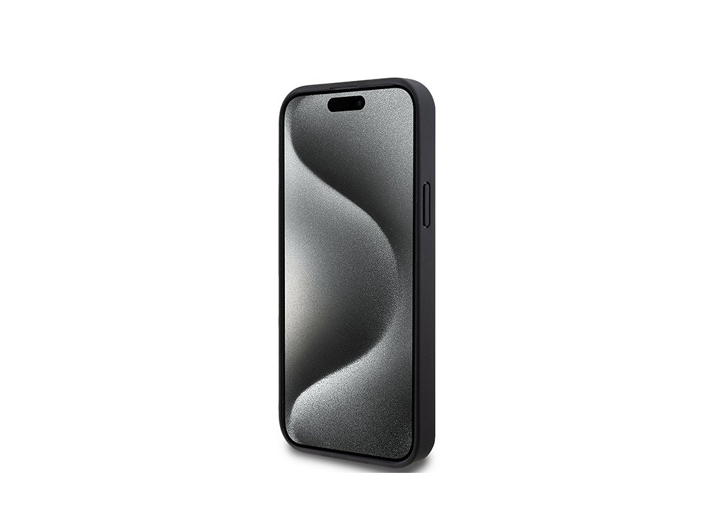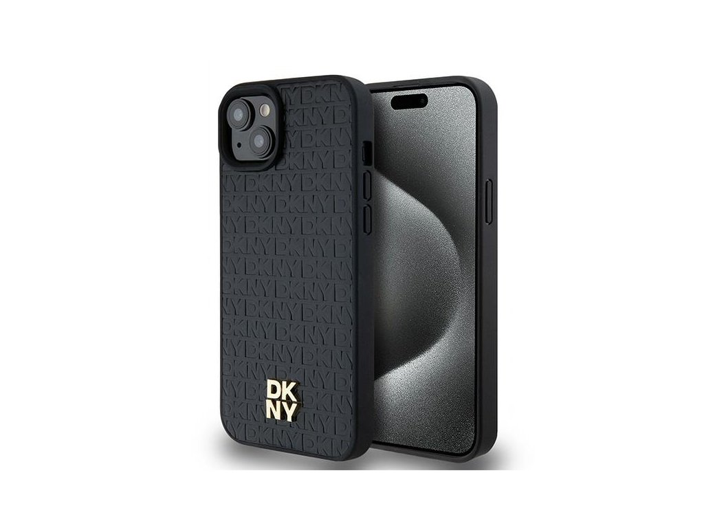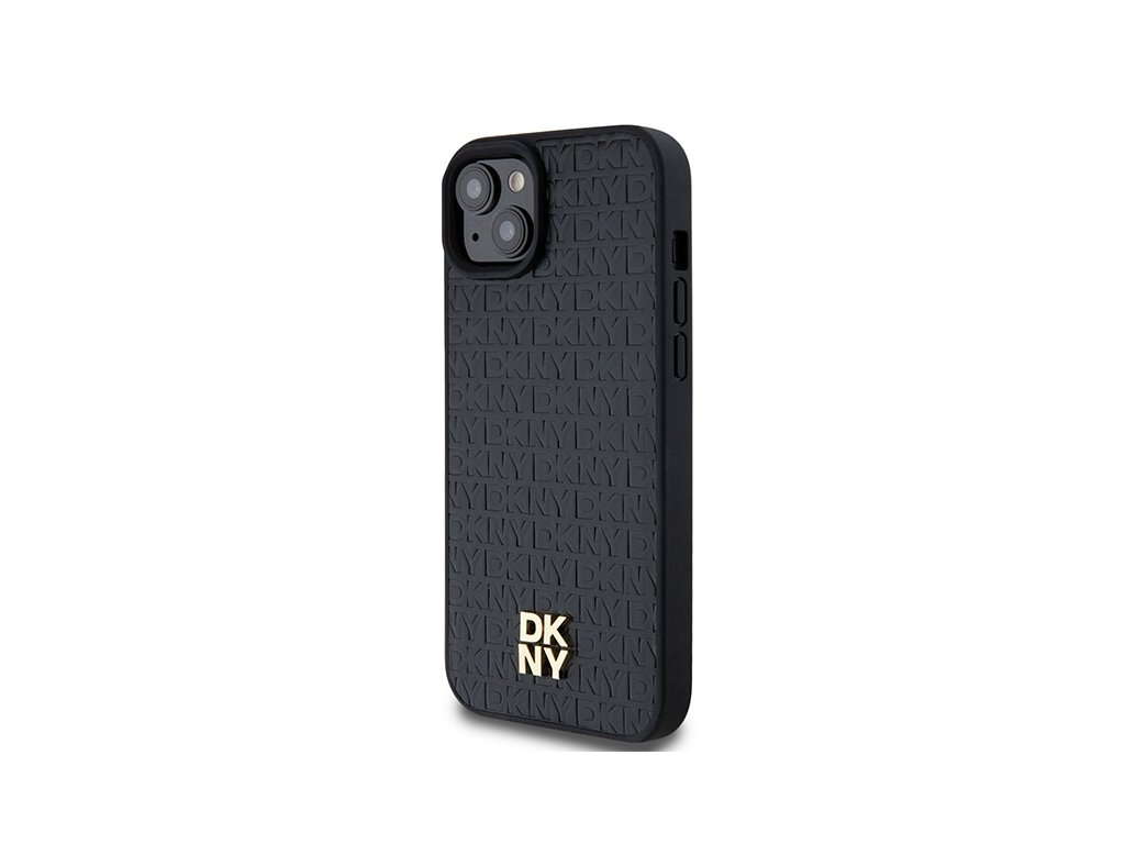 DKNY - Leather Monogram Pattern Metal Logo MagSafe (DKHMP15MPSHRPSK) - iPhone 15 Plus - Black