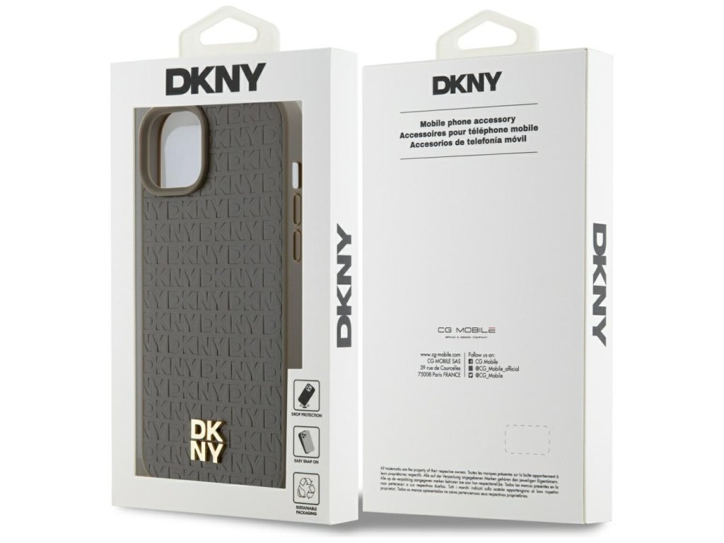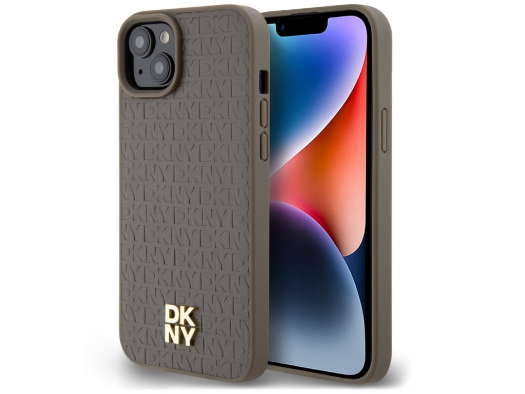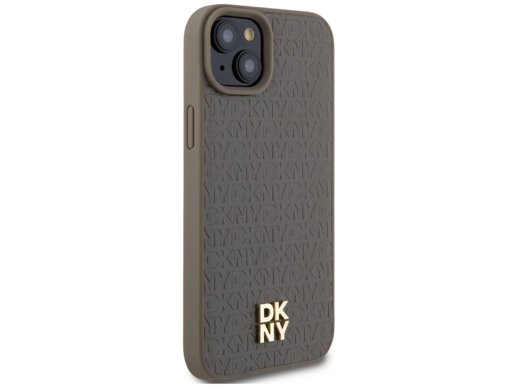 DKNY - Leather Pattern Metal Logo MagSafe (DKHMP14SPSHRPSW) - iPhone 14 - Brown