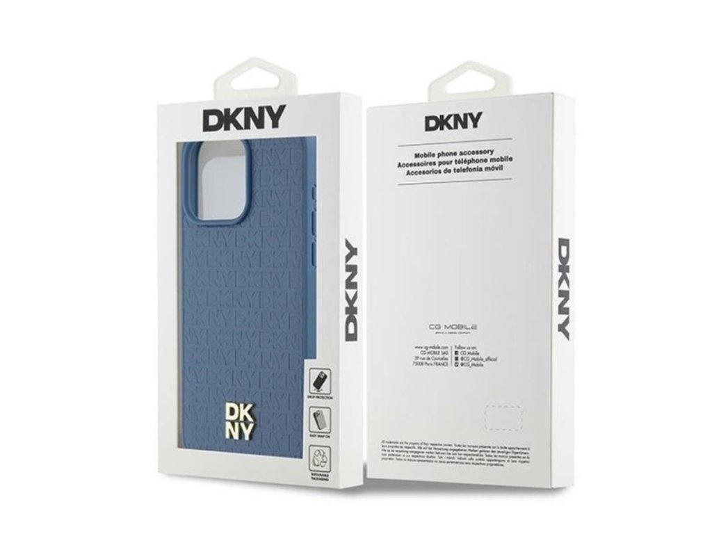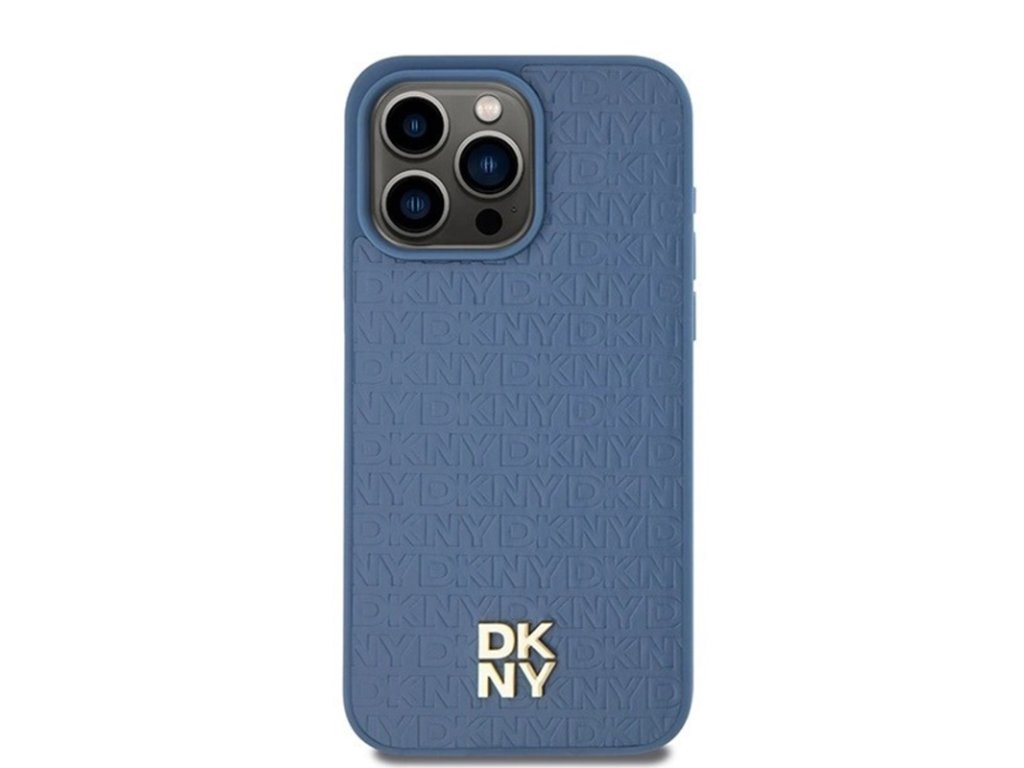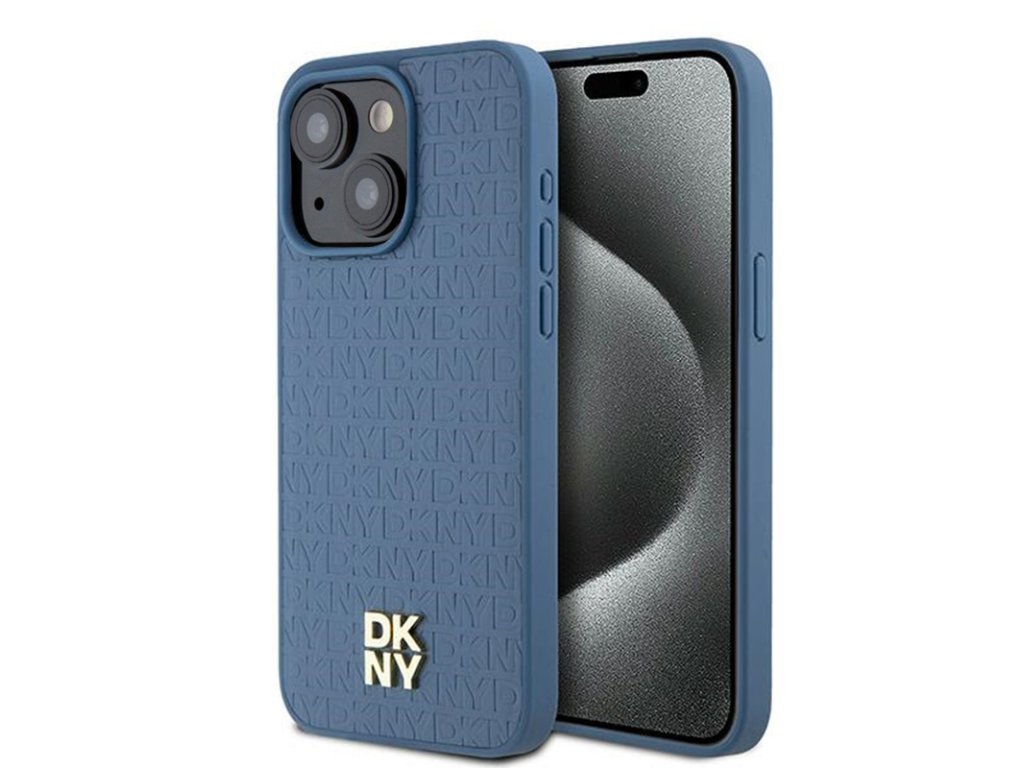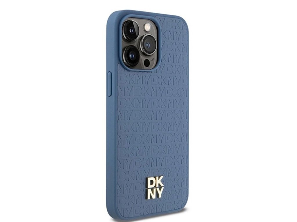 DKNY - Leather Pattern Metal Logo MagSafe (DKHMP15SPSHRPSB) - iPhone 15 - Blue