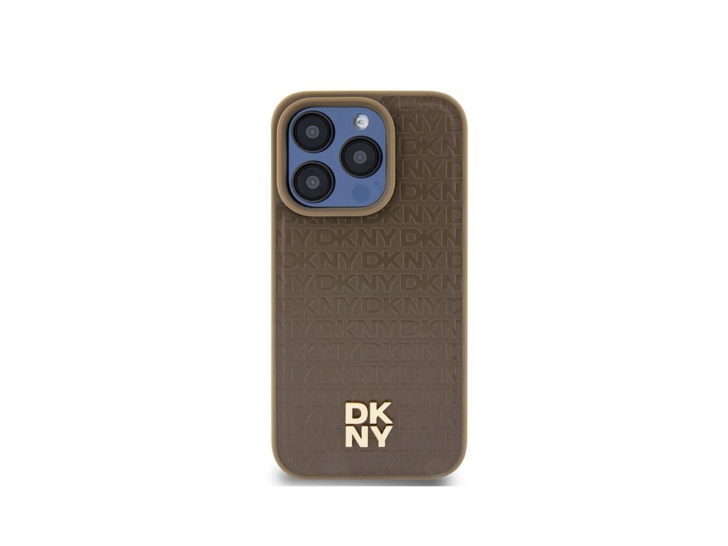 DKNY - Leather Pattern Metal Logo MagSafe (DKHMP15XPSHRPSW) - iPhone 15 Pro Max - Brown