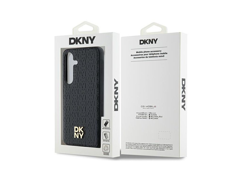 DKNY - Leather Pattern Metal Logo MagSafe (DKHMS24MPSHRPSK) - Samsung Galaxy S24 Plus - Black