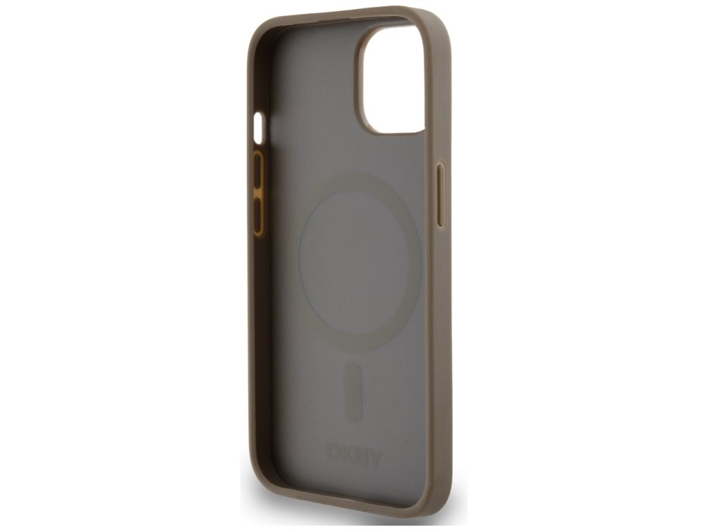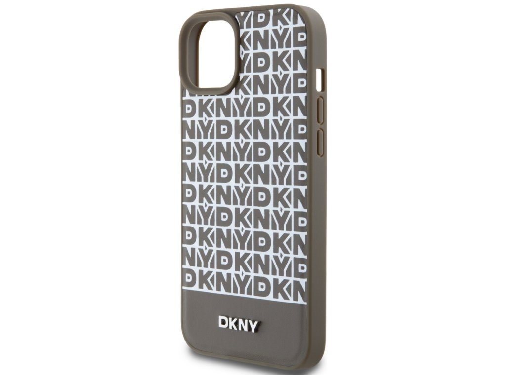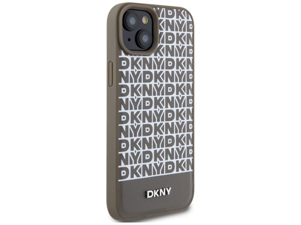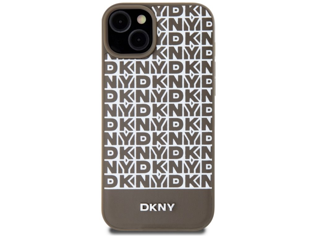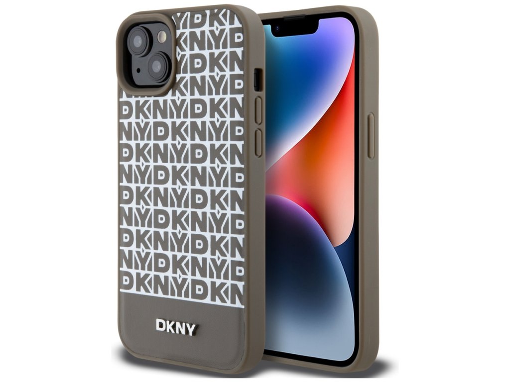 DKNY - Leather Printed Pattern Metal Logo MagSafe (DKHMP15SPSOSPW) - iPhone 15 - Brown