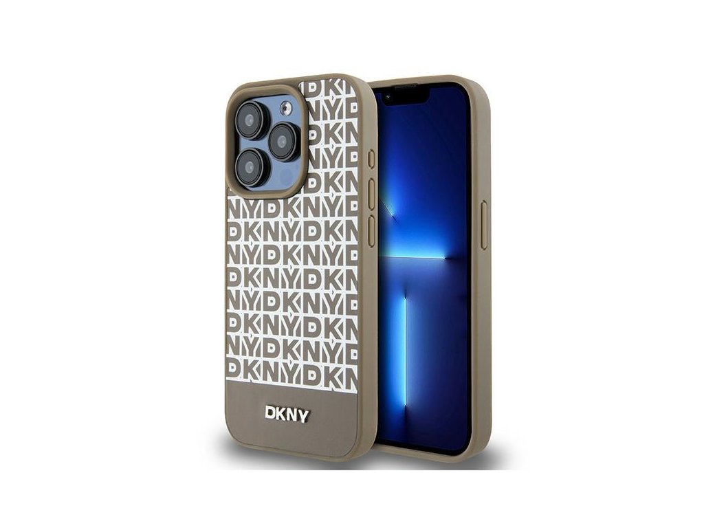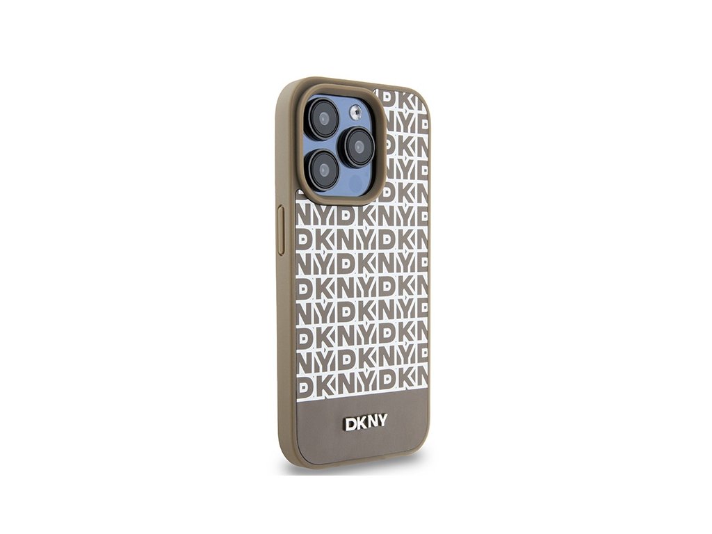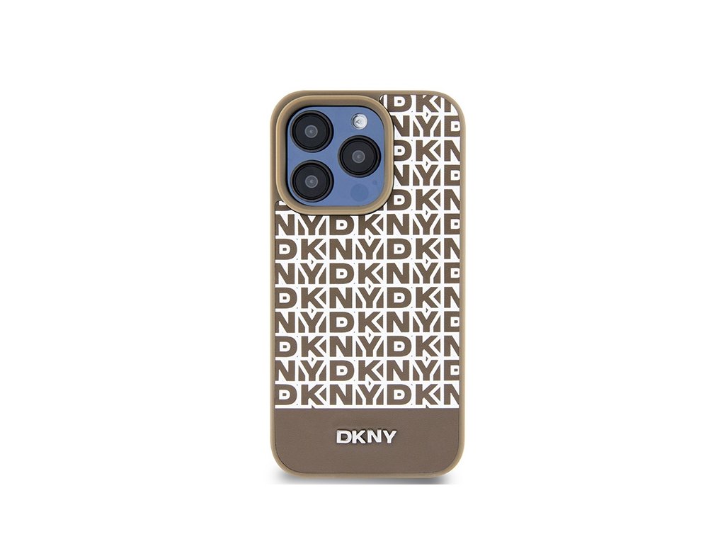 DKNY - Leather Printed Pattern Metal Logo MagSafe (DKHMP15XPSOSPW) - iPhone 15 Pro Max - Brown