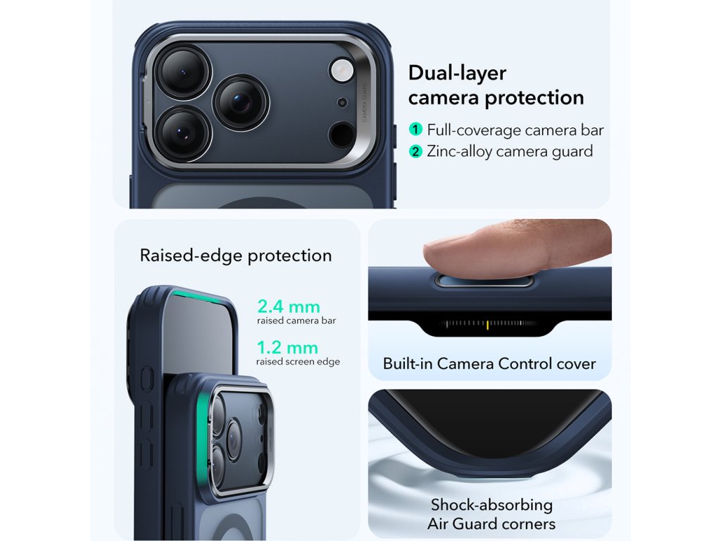 ESR – Classic Hybrid HaloLock Kickstand ochranný obal s podstavcom na iPhone 17 Pro – matný modrý