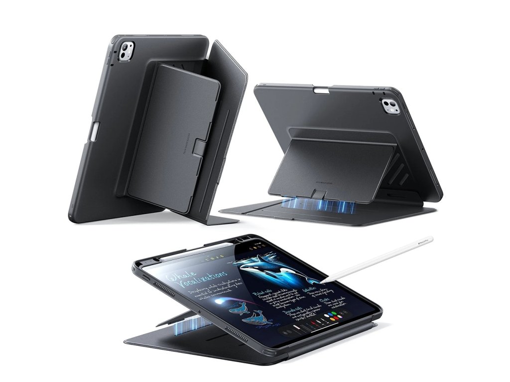 Teraz už nemusíte vyberať. Tento obal pre iPad Pro 11 (2024) vám umožňuje umiestniť tablet horizontálne aj vertikálne. Lepší stojan na stôl neexistuje.