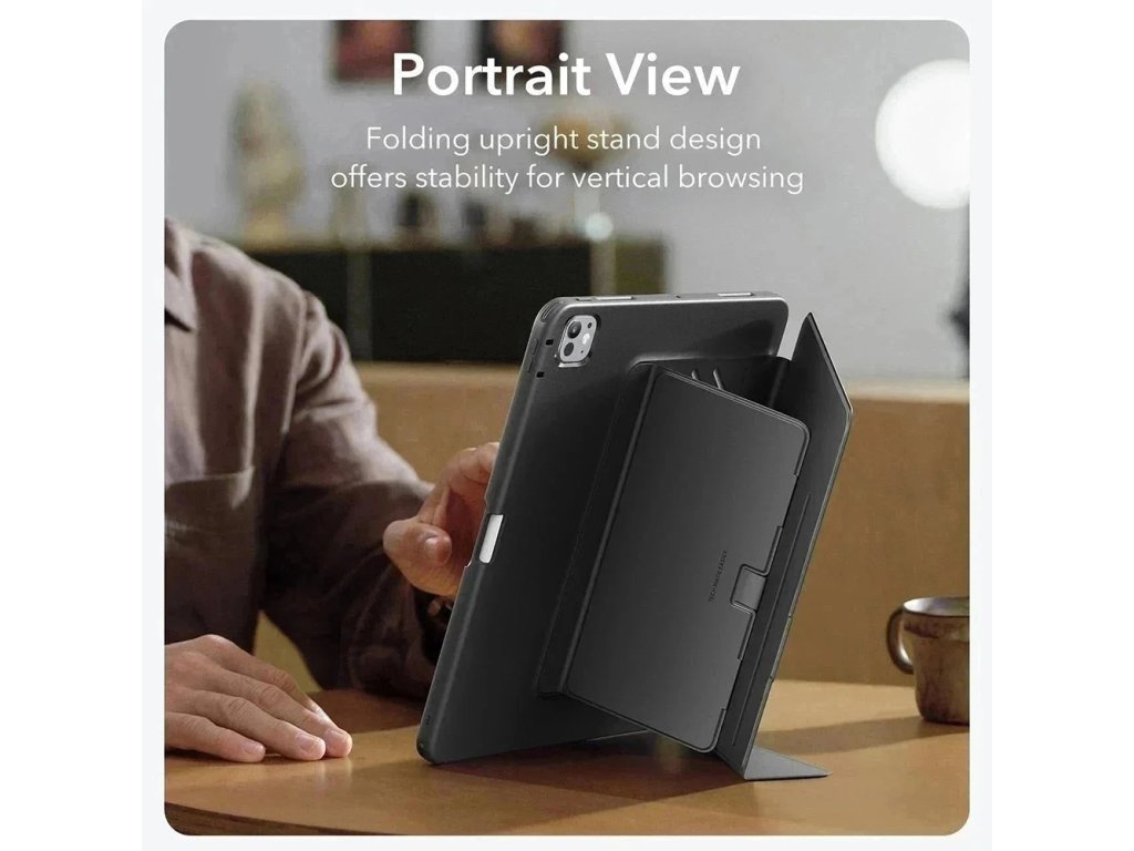 Teraz už nemusíte vyberať. Tento obal pre iPad Pro 13 (2024) umožňuje umiestniť tablet horizontálne aj vertikálne. Lepší stolový stojan neexistuje.