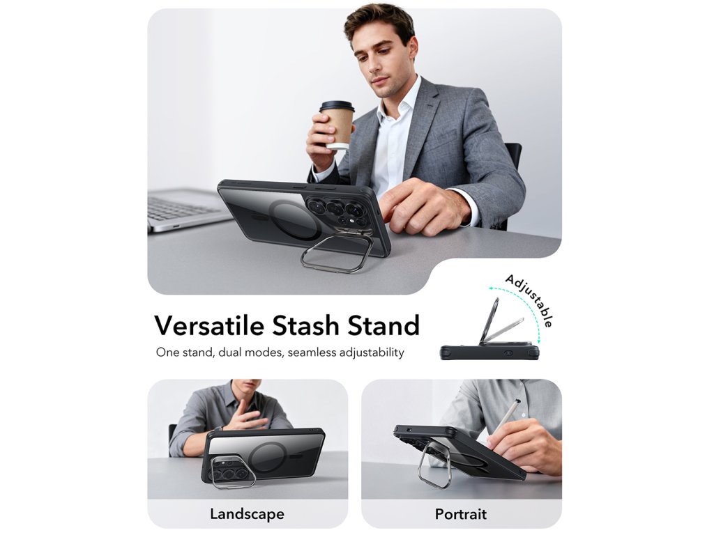 ESR - Classic Hybrid HaloLock Kickstand - Samsung Galaxy S26 Ultra - Clear Black