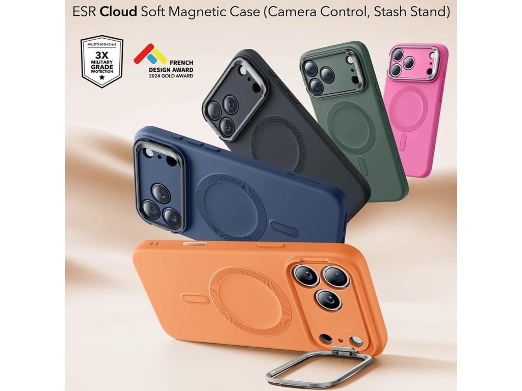 ESR - Cloud Soft HaloLock Kickstand kryt s MagSafe a stojanom pre iPhone 17 Pro Max – oranžový