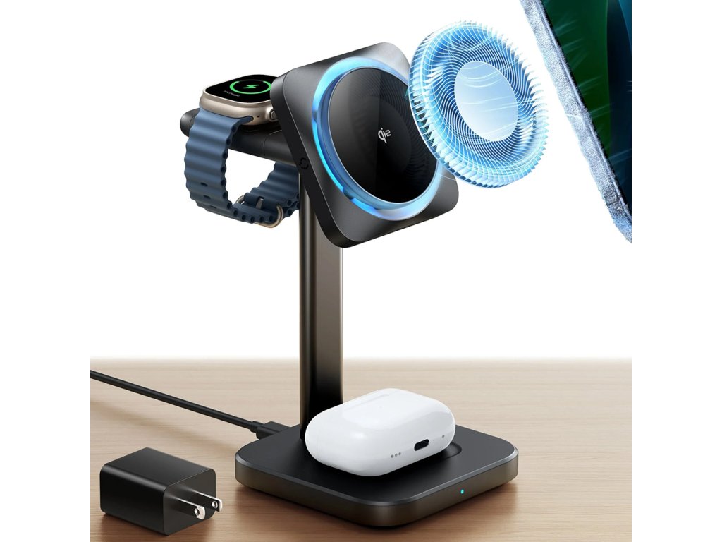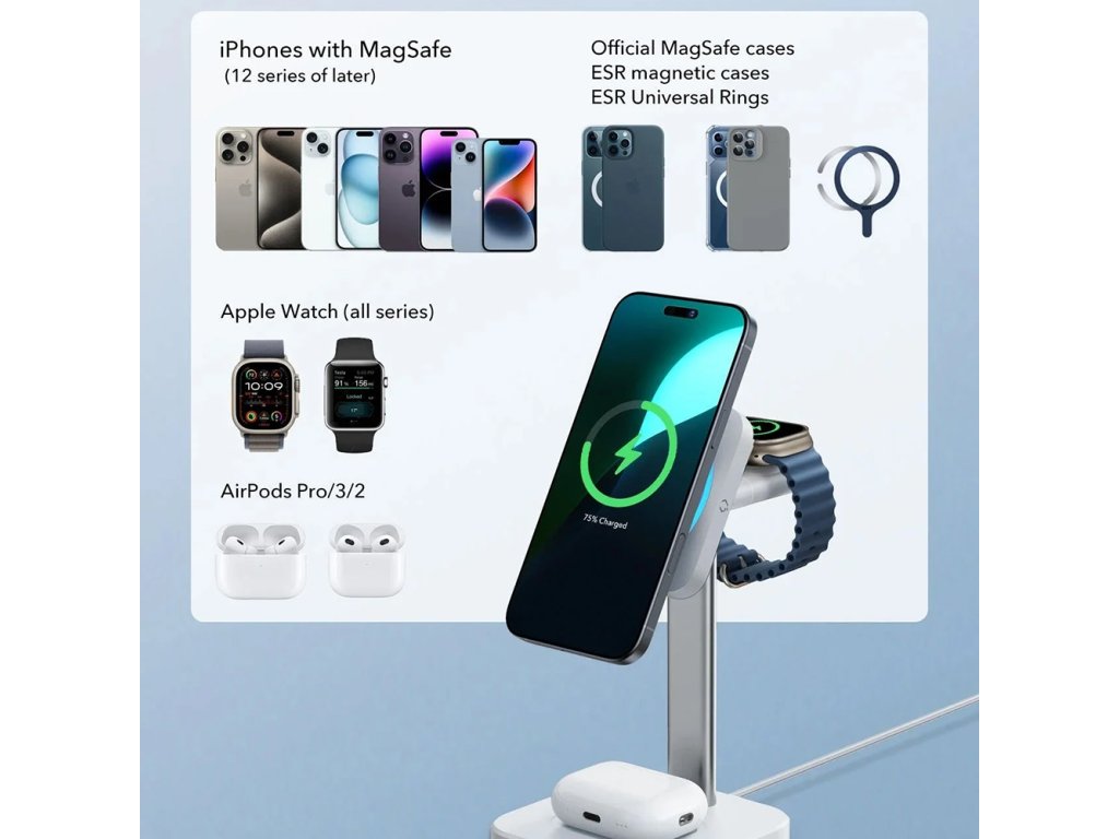 ESR - CryoBoost Charging Station nabíjacia stanica pre Apple zariadenia s adaptérom a odnímateľnou nabíjačkou Apple Watch, Qi2.2, 35 W – čierna