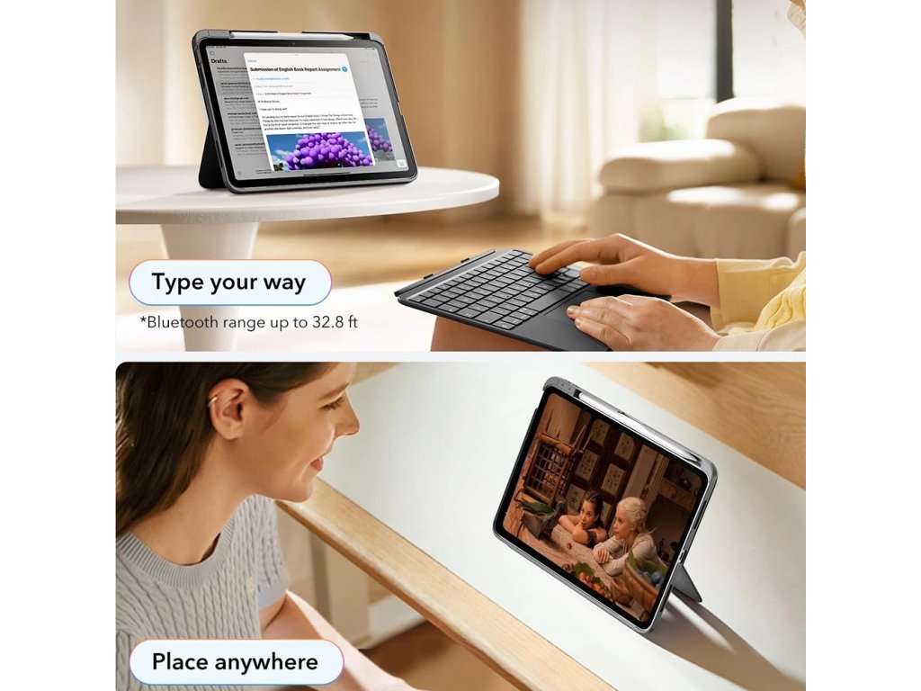 ESR - Flex Keyboard Case klávesnicové puzdro pre iPad 10 (2022) 10.9 / iPad 11 (2025) - tmavosivé