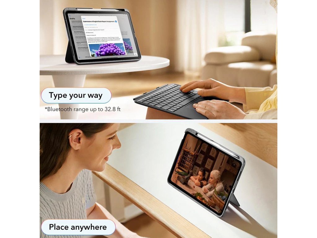 ESR - Flex Keyboard Case klávesnicové puzdro pre iPad Air 4 (2020) / Air 5 (2022) / Air 11 (2024) / Air 11 (2025) - tmavosivé