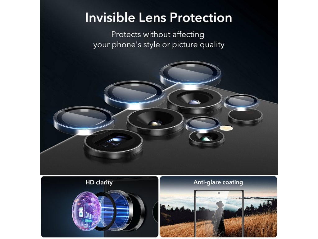 ESR - Screen Shield + Camera Lens Protectors (2 pack) - Samsung Galaxy S24 Ultra - Black