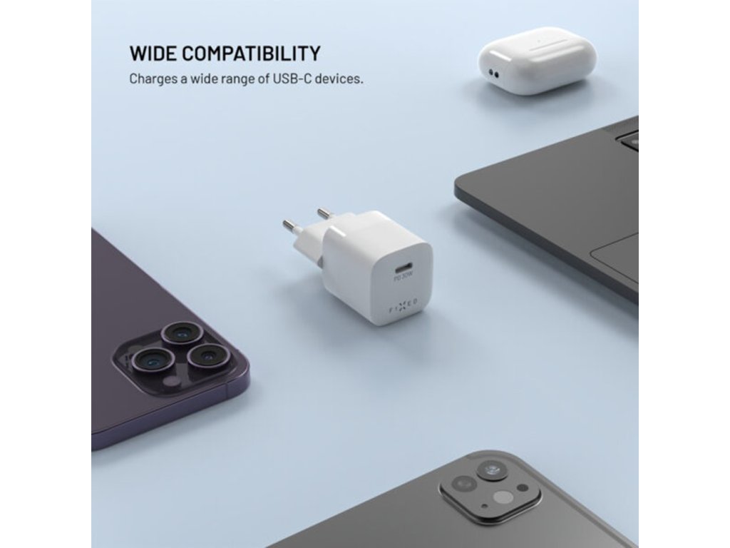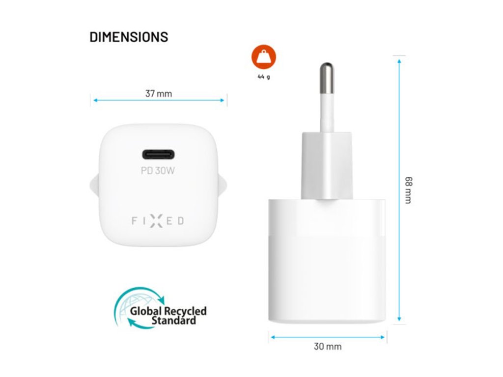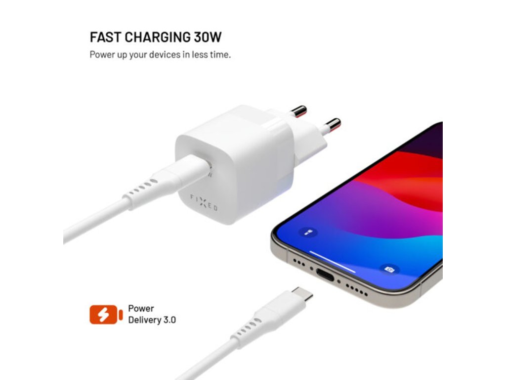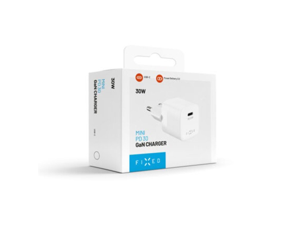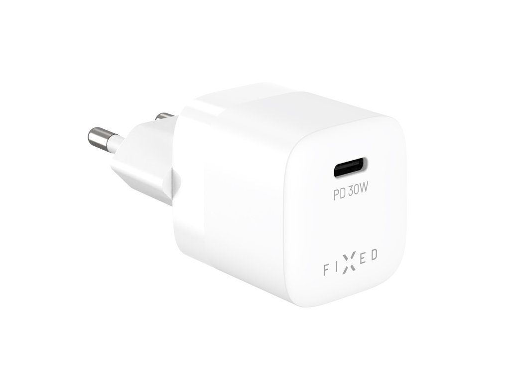 Fixed - Wall Charger Mini sieťová nabíjačka (GaN technológia, USB-C, PD3.0, 30W, kompaktná veľkosť) - biela