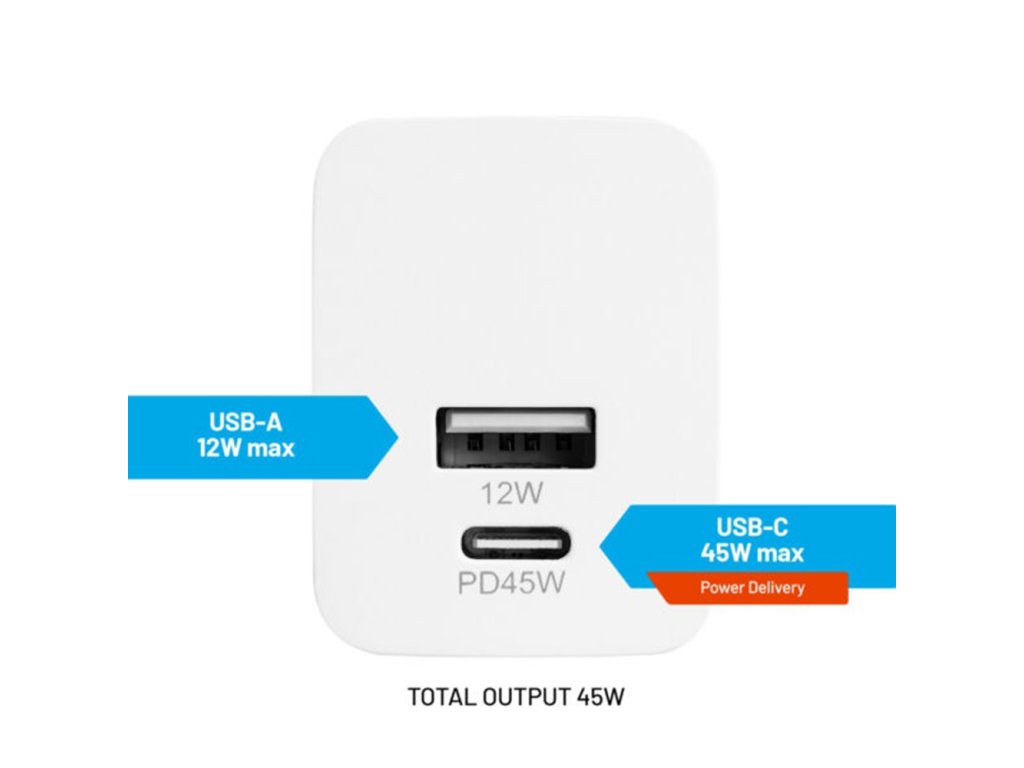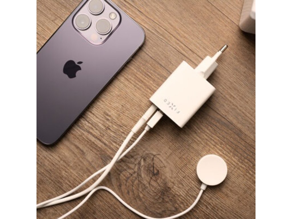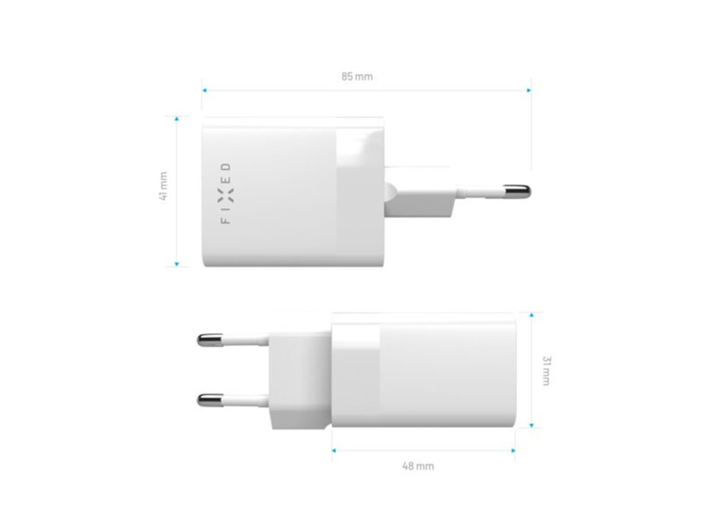 Fixed - Wall Charger Mini sieťová nabíjačka (rýchlonabíjanie, USB + USB-C, PD3.0, 45W, kompaktná veľkosť) - biela