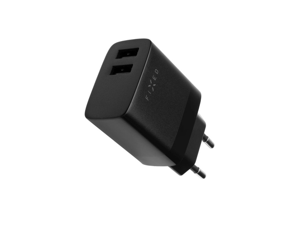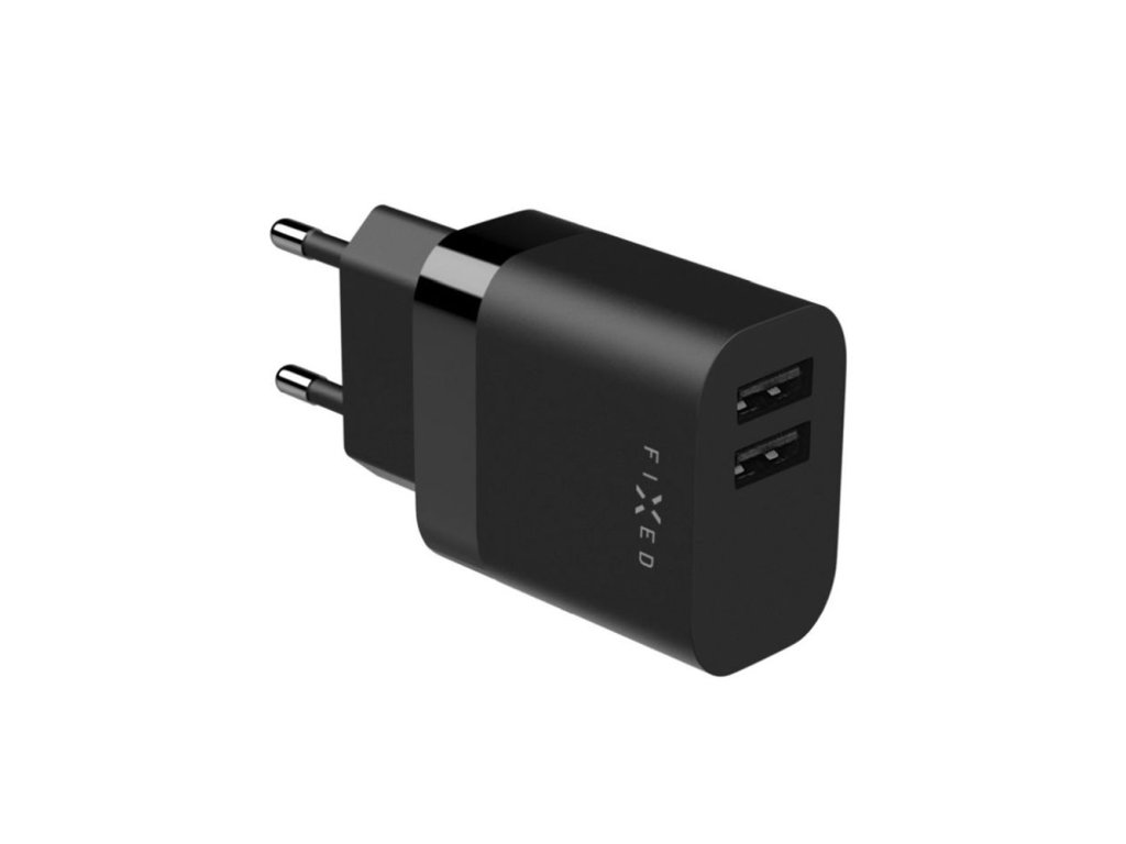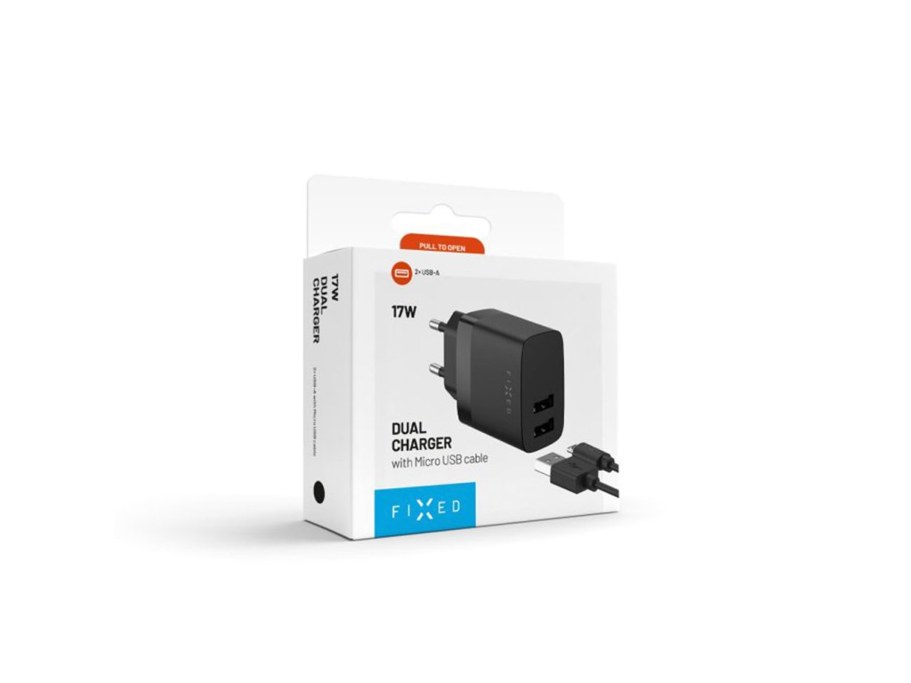 Fixed - Wall Charger sieťová nabíjačka (2× USB, Smart Rapid Charge, 17W, USB – micro-USB kábel 1 m) - čierna