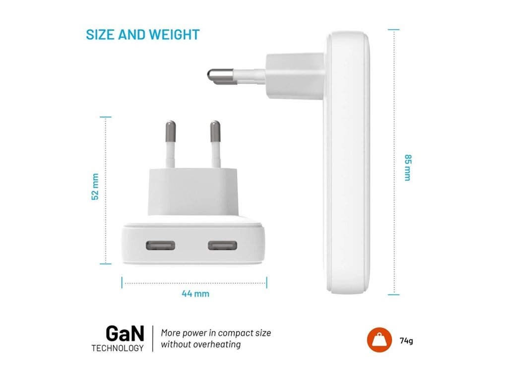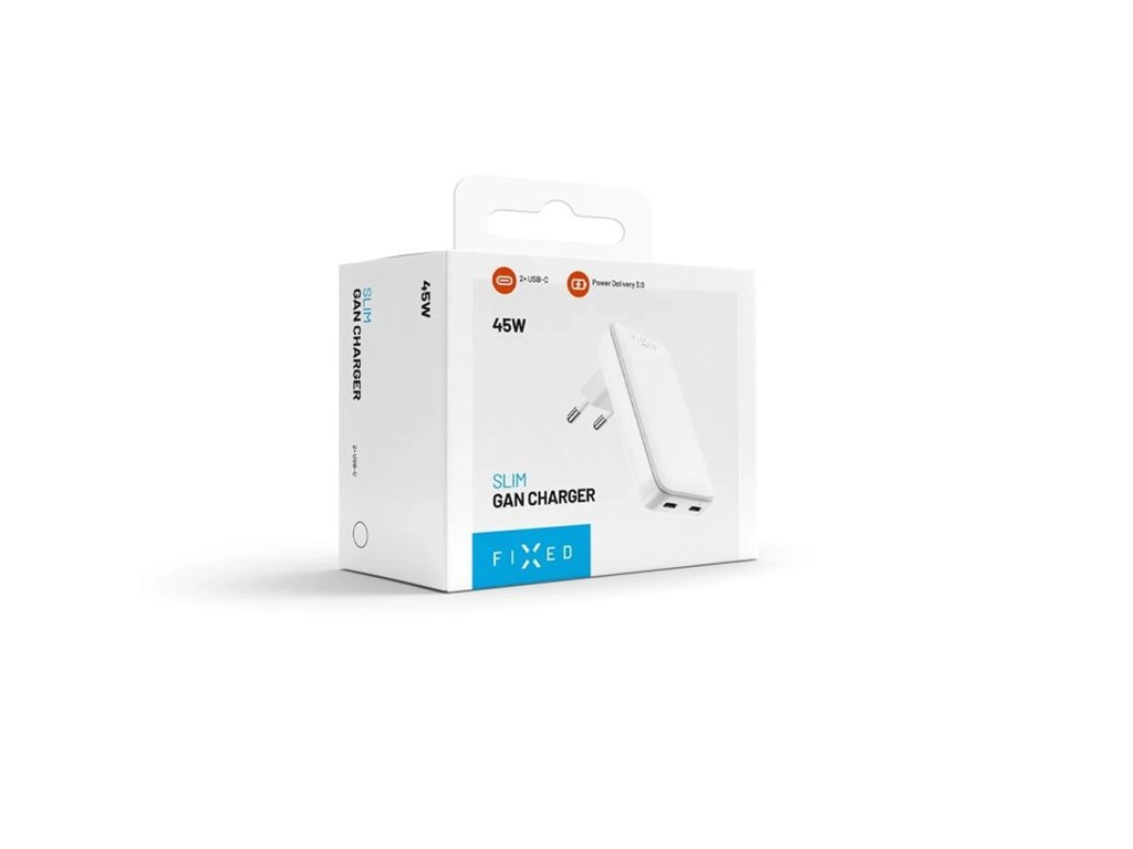 Fixed - Wall Charger Slim sieťová nabíjačka (GaN technológia, 2× USB-C, Power Delivery 3.0, 45W) - biela