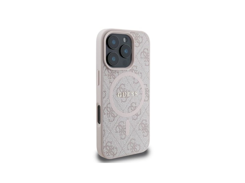 Guess – 4G Ring Classic Logo MagSafe ochranné puzdro s prsteňom pre iPhone 16 Pro Max – ružové