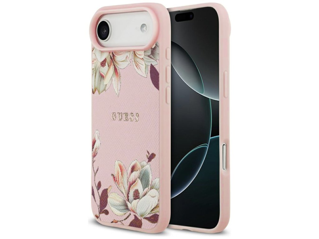 Guess – Grained Flowers MagSafe puzdro na iPhone 17 Air – ružové