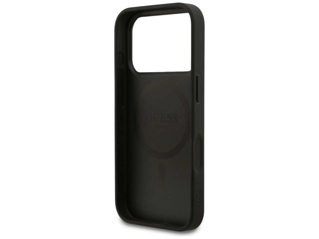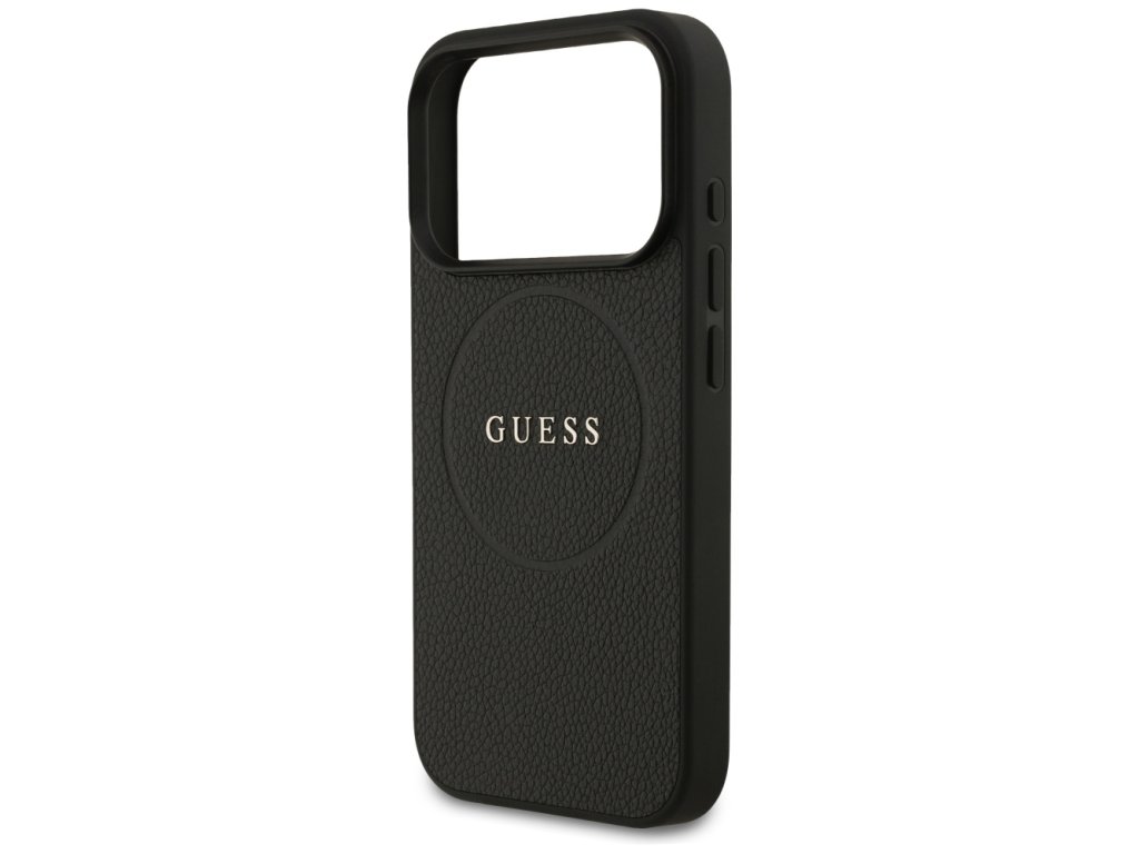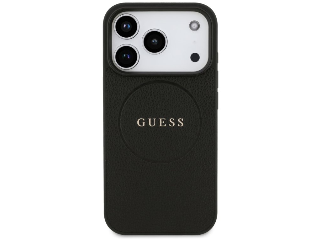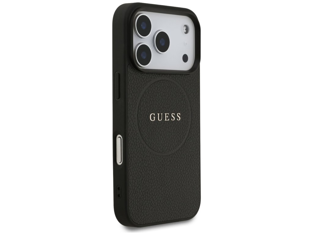 Guess – Grained Gold Ring MagSafe puzdro na iPhone 17 Pro – čierne
