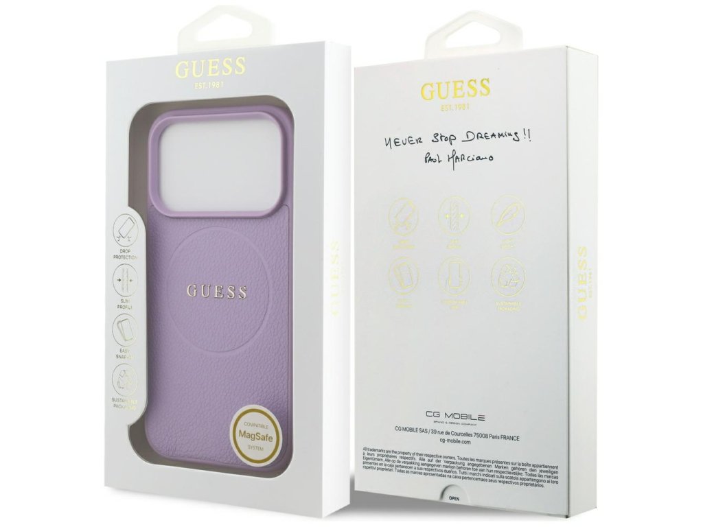 Guess – Grained Gold Ring MagSafe puzdro na iPhone 17 Pro Max – fialové