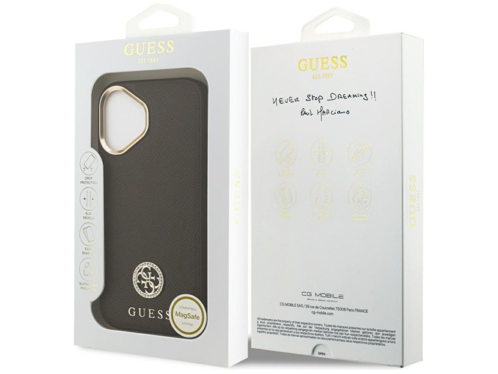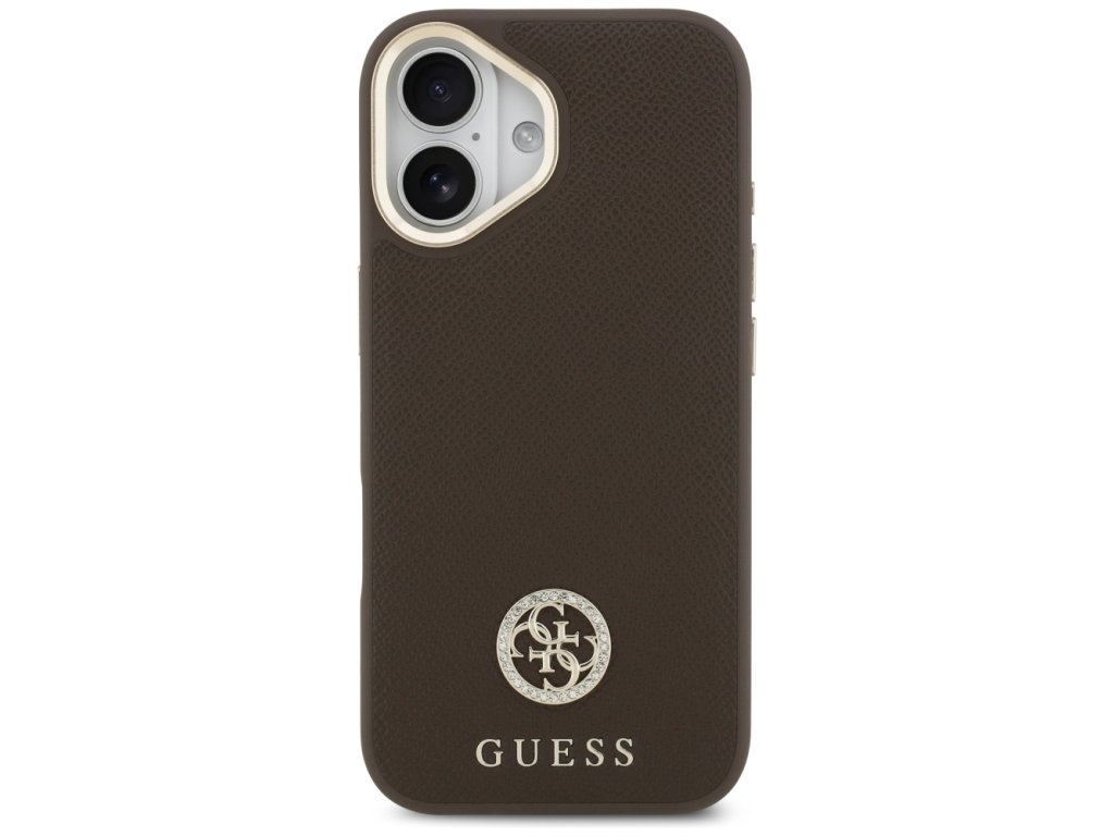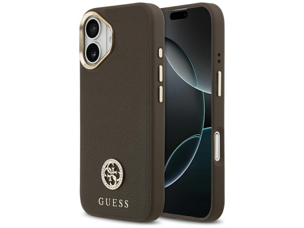 Guess – Grained Strass Logo MagSafe puzdro na iPhone 17 – hnedé