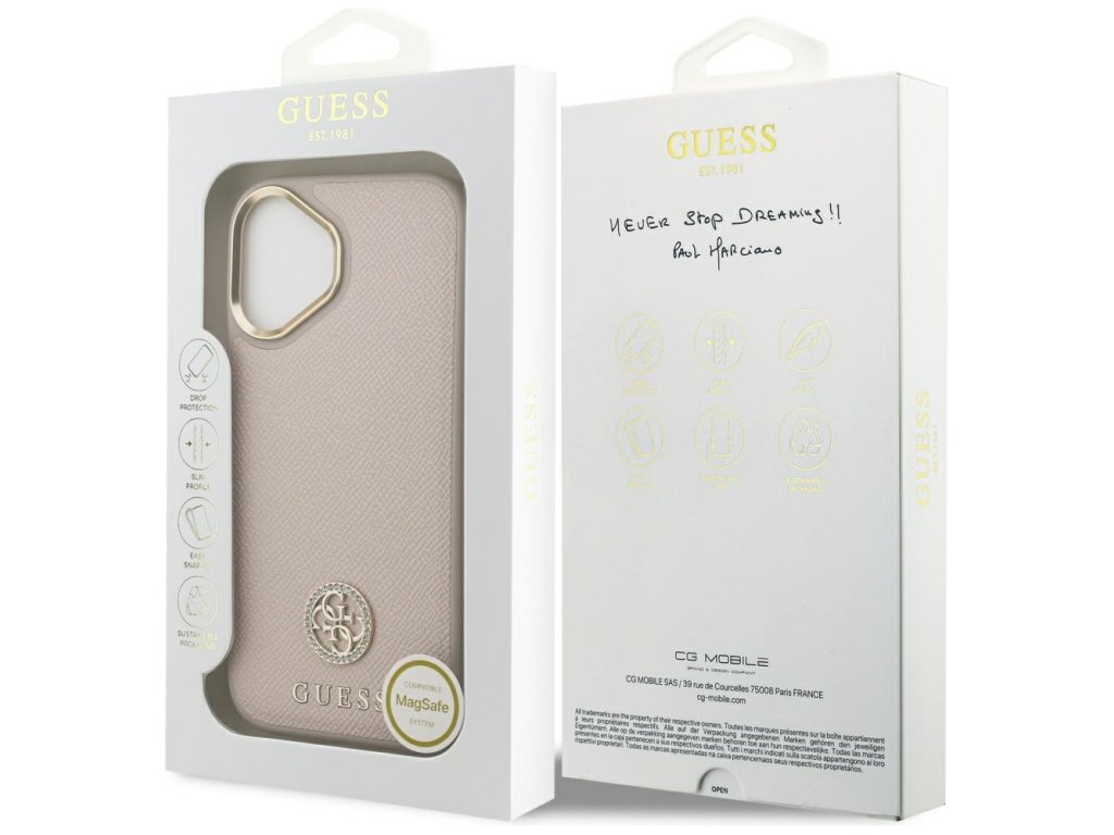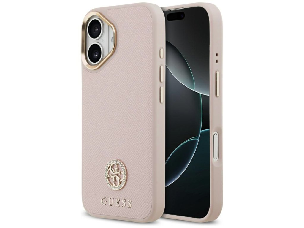 Guess – Grained Strass Logo MagSafe puzdro na iPhone 17 – ružové