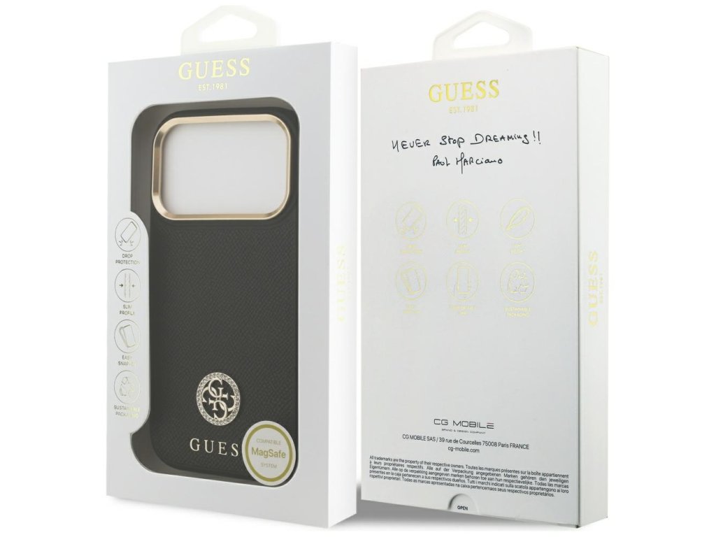 Guess – Grained Strass Logo MagSafe puzdro na iPhone 17 Pro – čierne
