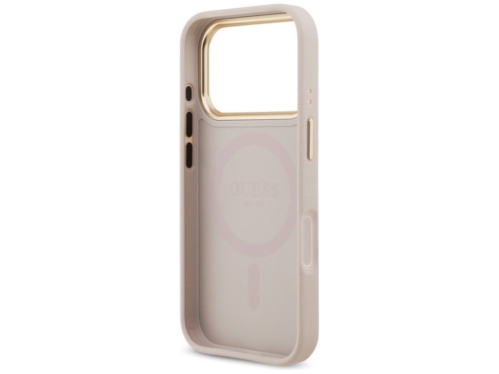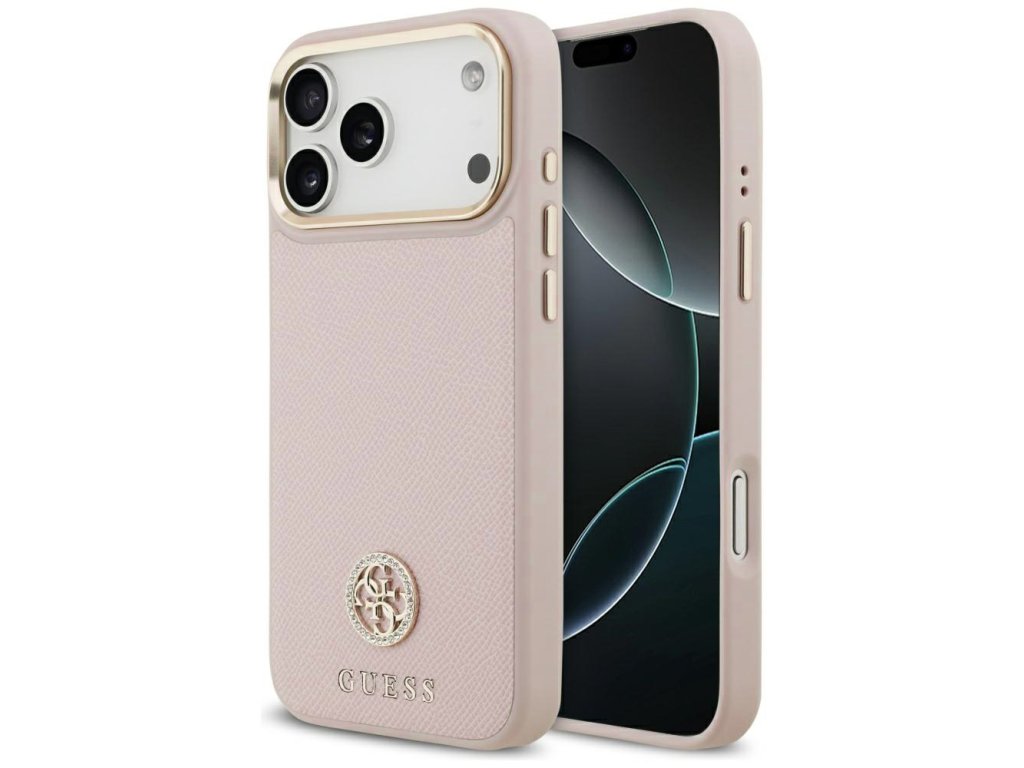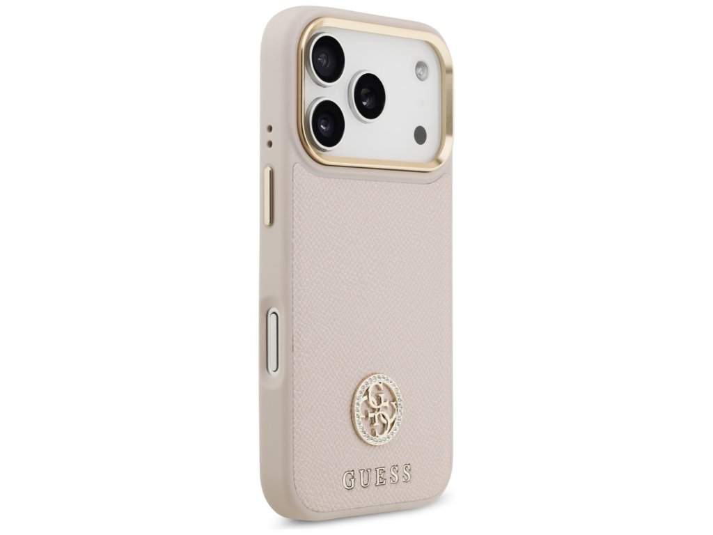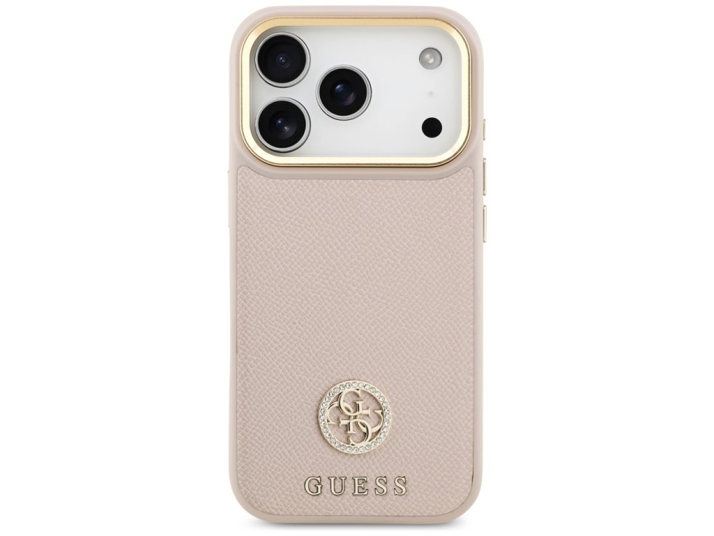 Guess – Grained Strass Logo MagSafe puzdro na iPhone 17 Pro – ružové