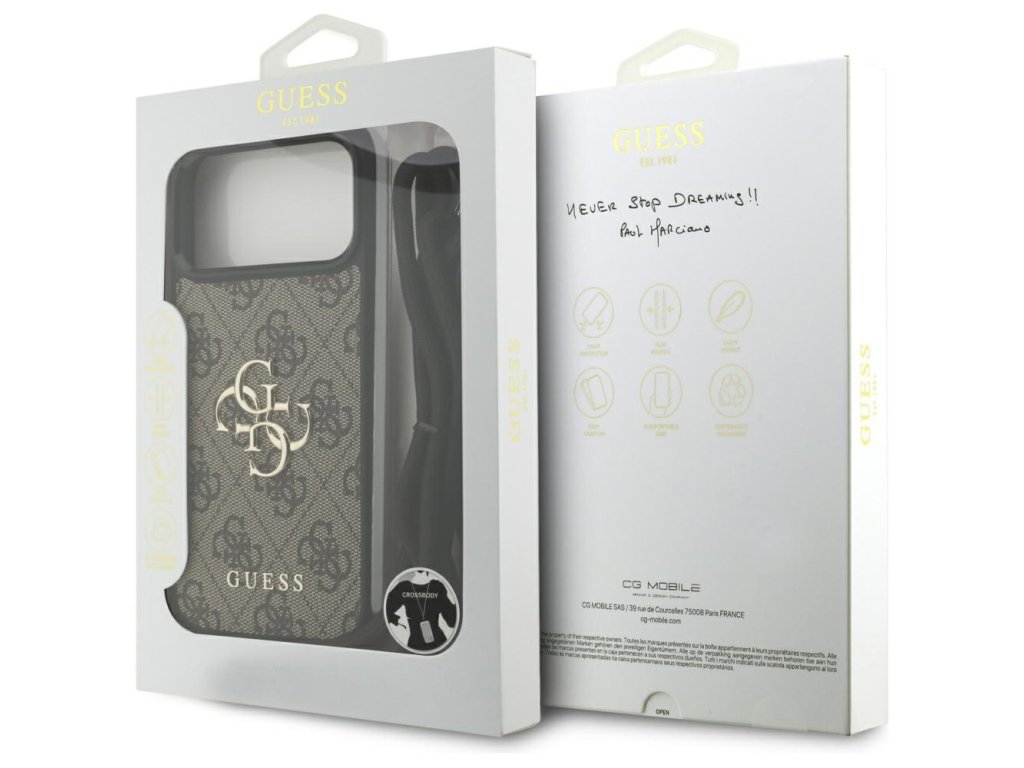 Guess – Hardcase 4G CBDY Big Logo obal s popruhom na iPhone 17 Pro Max – hnedý