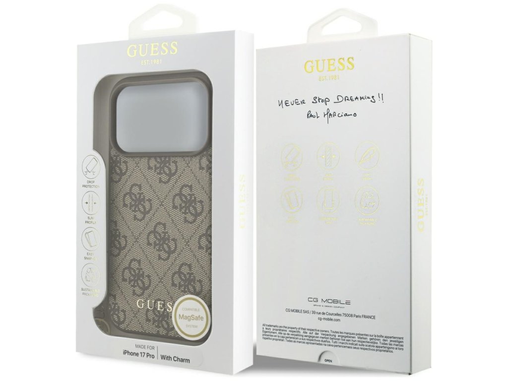 Guess – Hardcase 4G Charm Cradle MagSafe obal na iPhone 17 Pro Max – hnedý