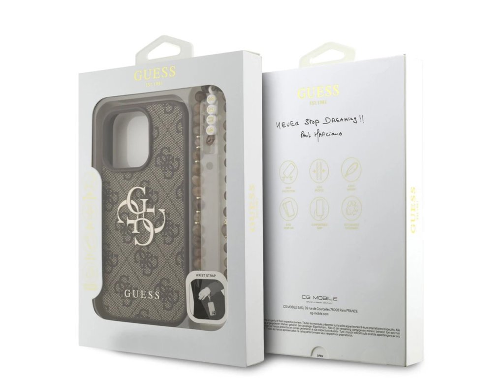 Potešte sa ekologickým koženým krytom, ktorý budete obdivovať každý deň. Čo viac by ste mohli chcieť ako toto originálne puzdro Guess iPhone 16 Pro Max?