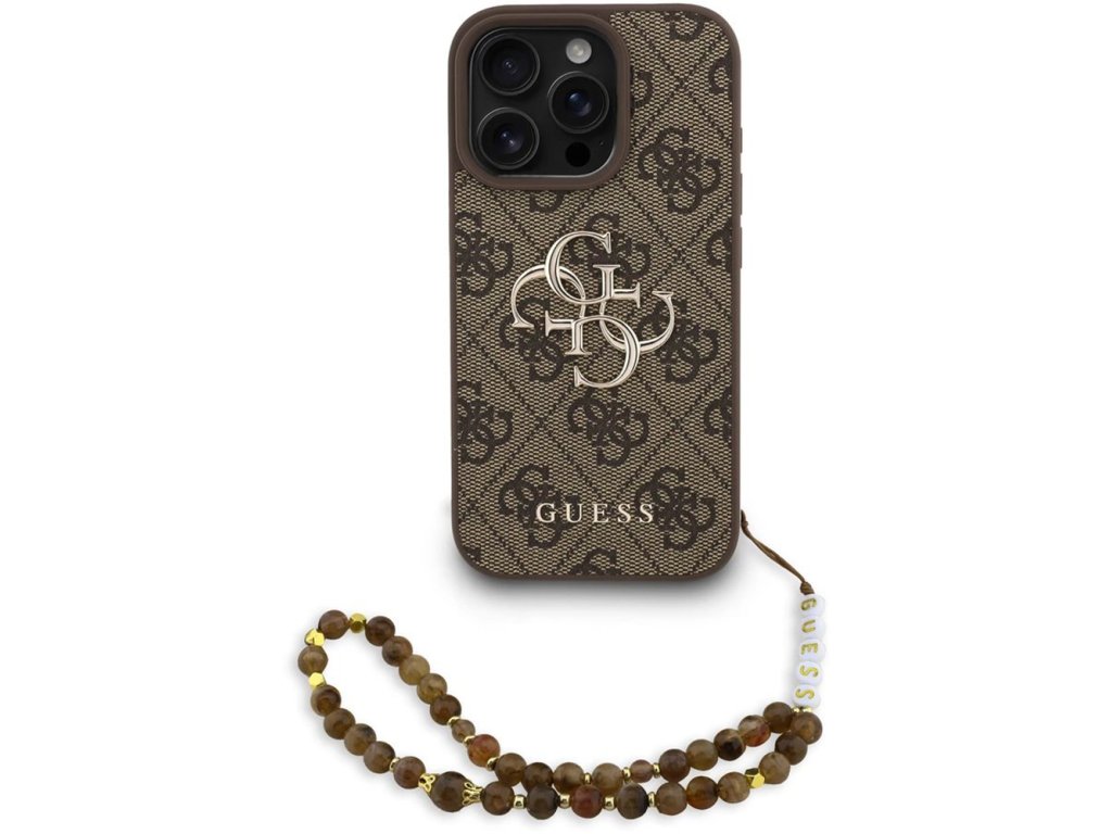 Guess – Hardcase 4G Classic Logo s popruhom obal na iPhone 16 Pro Max – hnedý