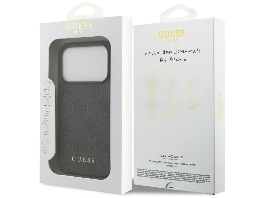 Poteš sa obalom z ekologickej kože, ktorý môžeš obdivovať každý deň. Čo viac by si si mohol priať, než tento originálny obal Guess pre iPhone 17 Pro?