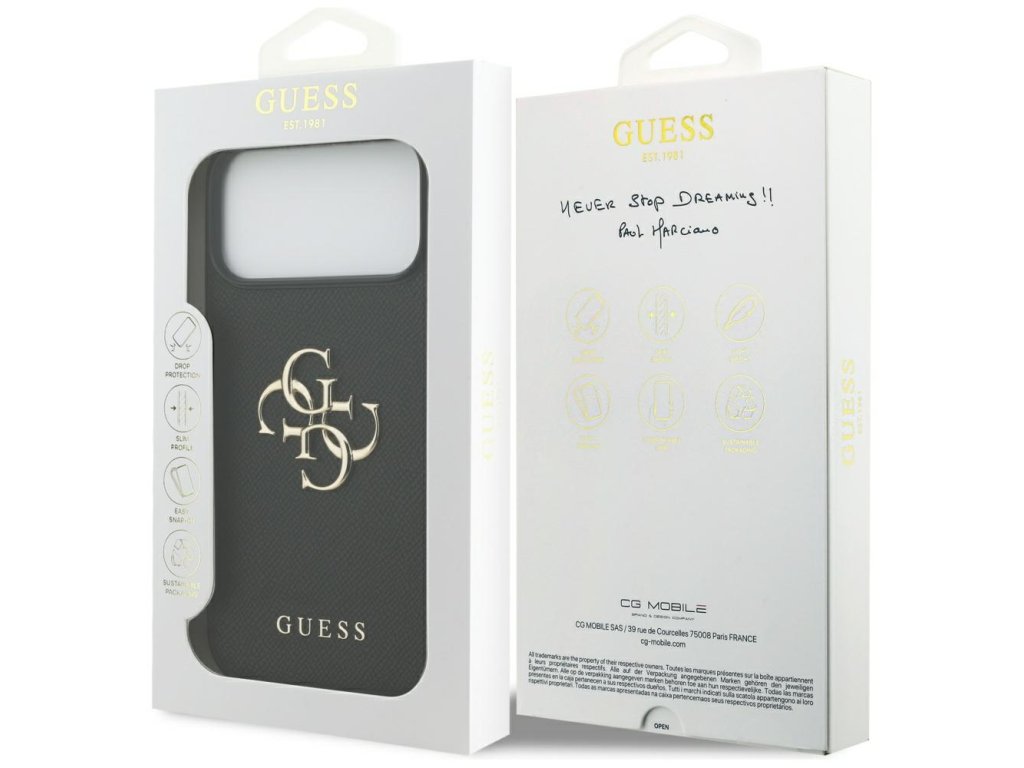 Dopraj si potešenie z púzdra z ekologickej kože, ktoré môžeš obdivovať každý deň. Čo by si mohol chcieť viac, než toto originálne puzdro Guess iPhone 17 Pro Max?