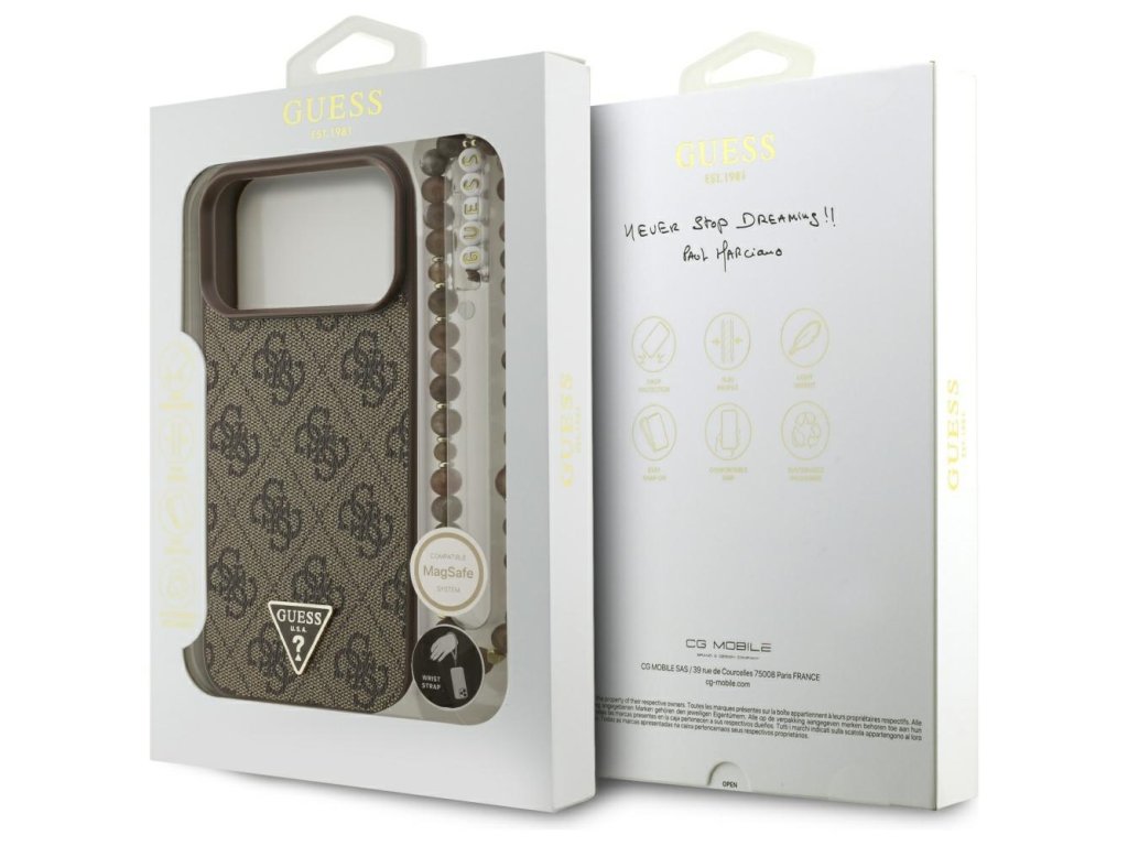 Guess – Hardcase 4G Strap Triangle Logo MagSafe obal na iPhone 17 Pro Max – hnedý