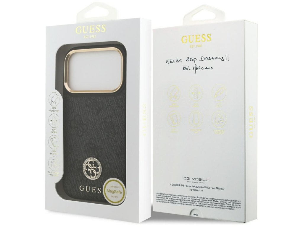 Guess – Hardcase 4G Strass Logo MagSafe obal na iPhone 17 Pro – čierny
