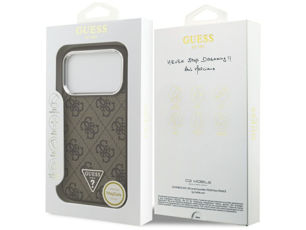 Guess – Hardcase 4G Triangle Logo MagSafe obal na iPhone 17 Pro – hnedý