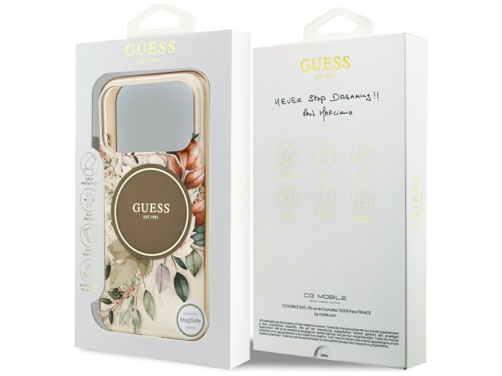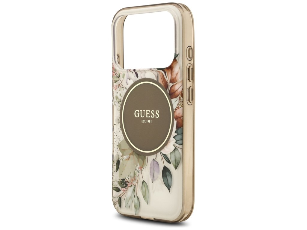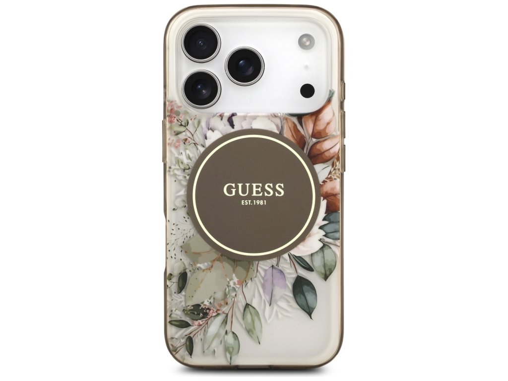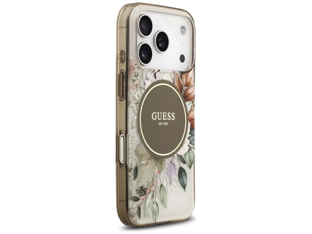 Guess – IML Flower & Tonal Circle MagSafe obal na iPhone 17 Pro – hnedý