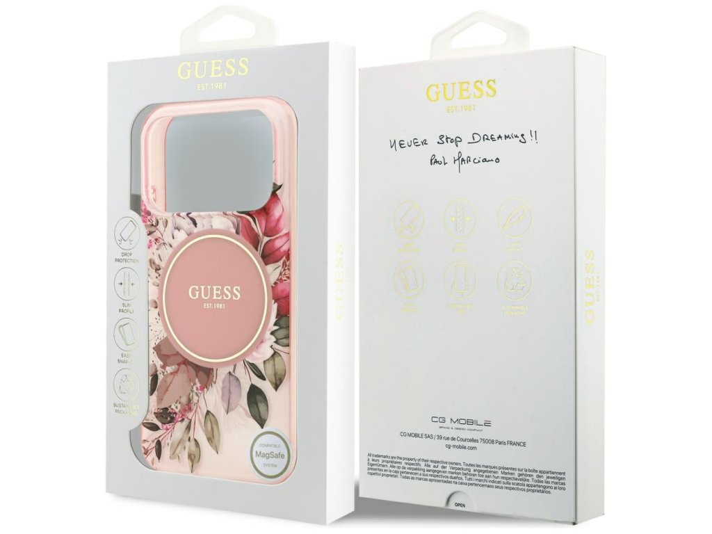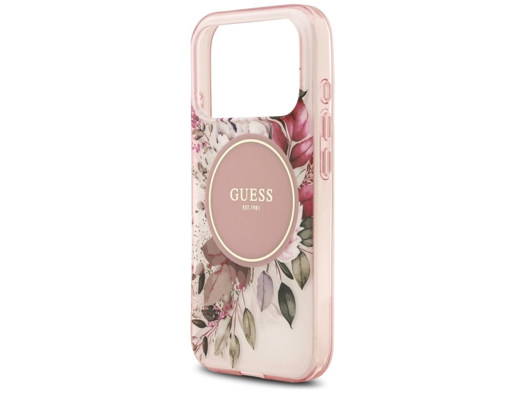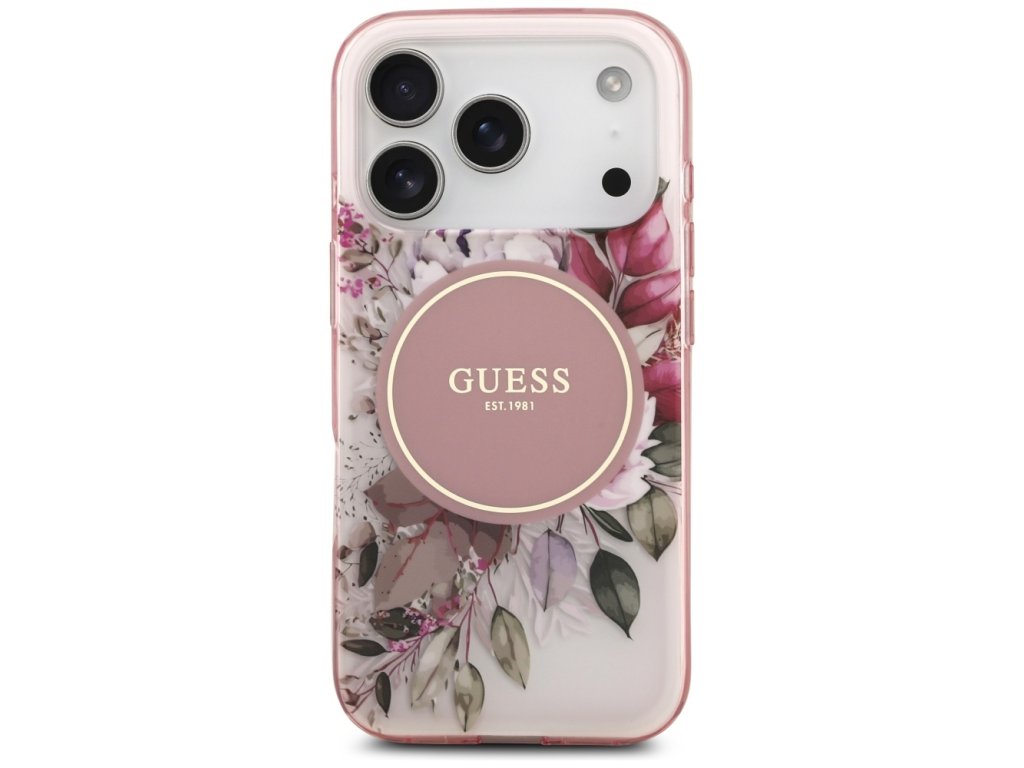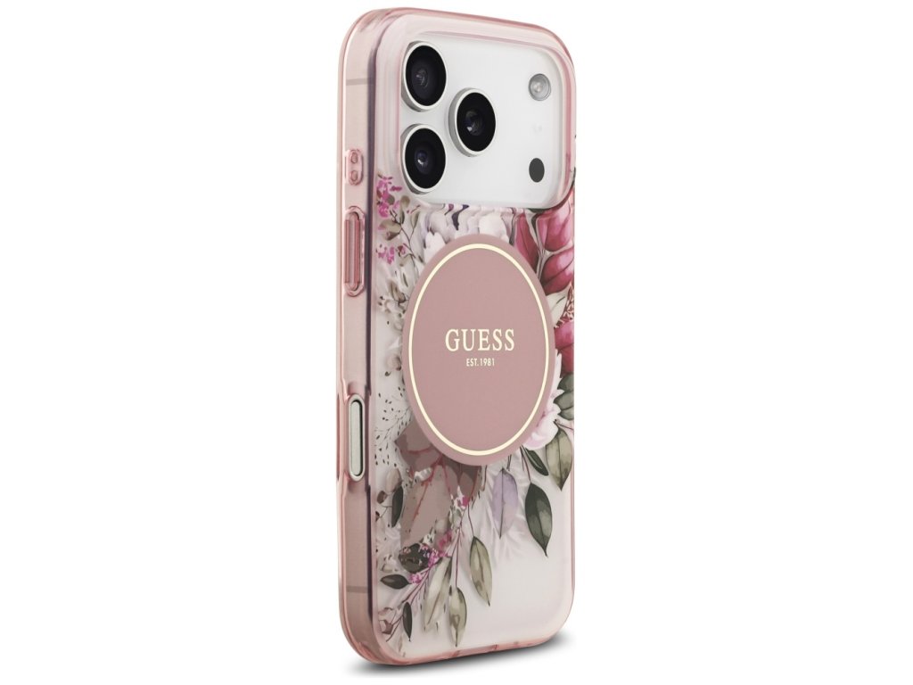 Guess – IML Flower & Tonal Circle MagSafe obal na iPhone 17 Pro – ružový
