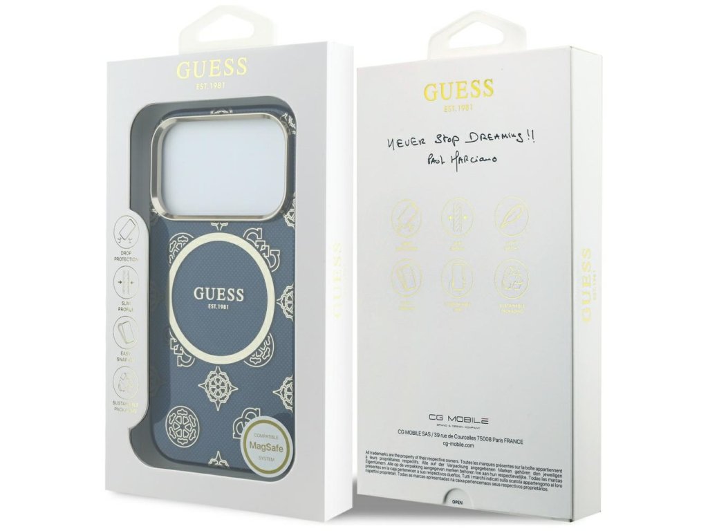 Guess – IML Peony Dot MagSafe puzdro pre iPhone 17 Pro Max – modré