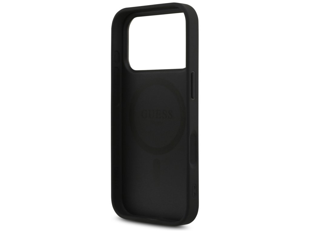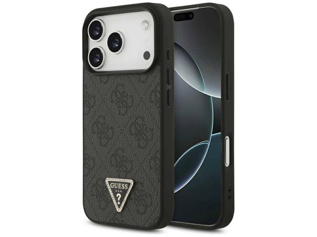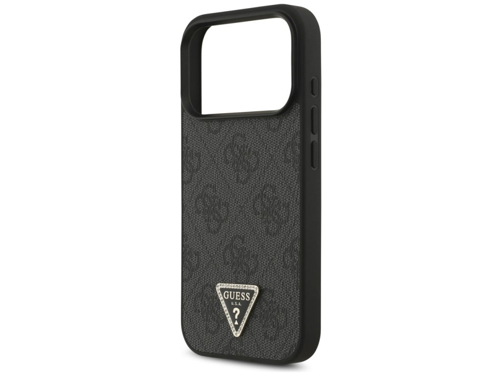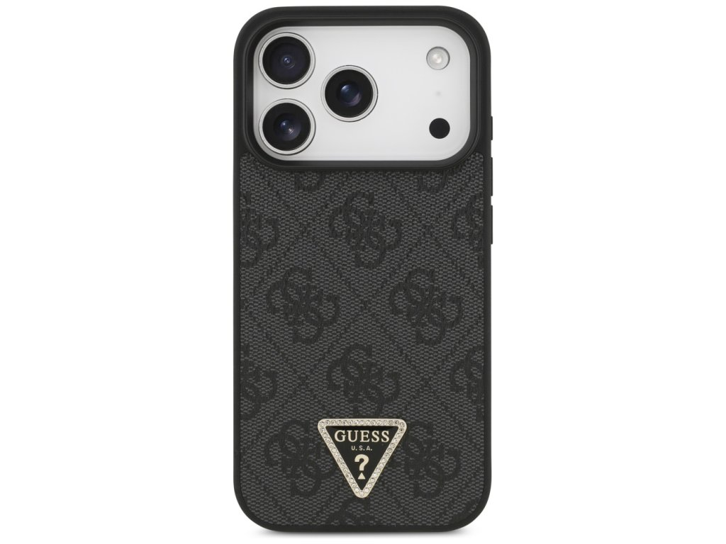 Guess – Leather 4G Triangle Strass MagSafe obal na iPhone 17 Pro – čierny