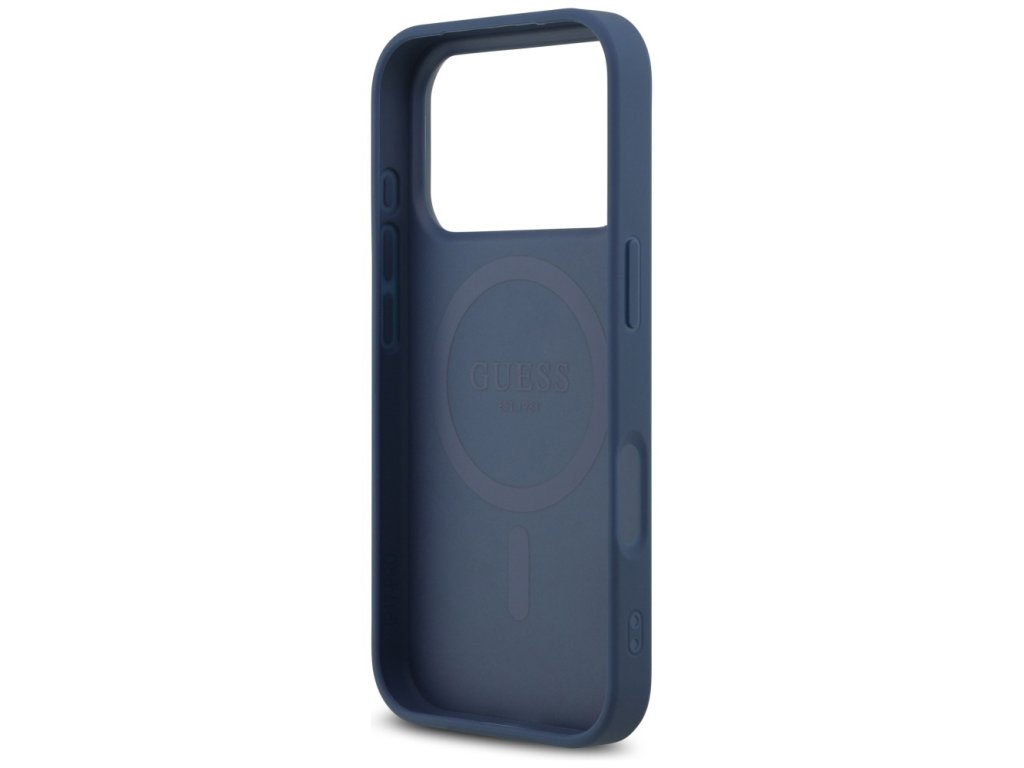 Guess – Leather 4G Triangle Strass MagSafe obal na iPhone 17 Pro – modrý