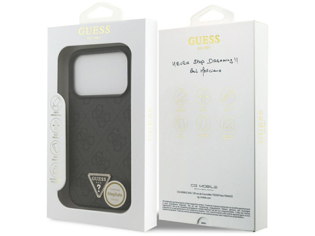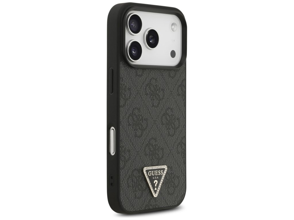 Guess – Leather 4G Triangle Strass MagSafe obal na iPhone 17 Pro Max – čierny