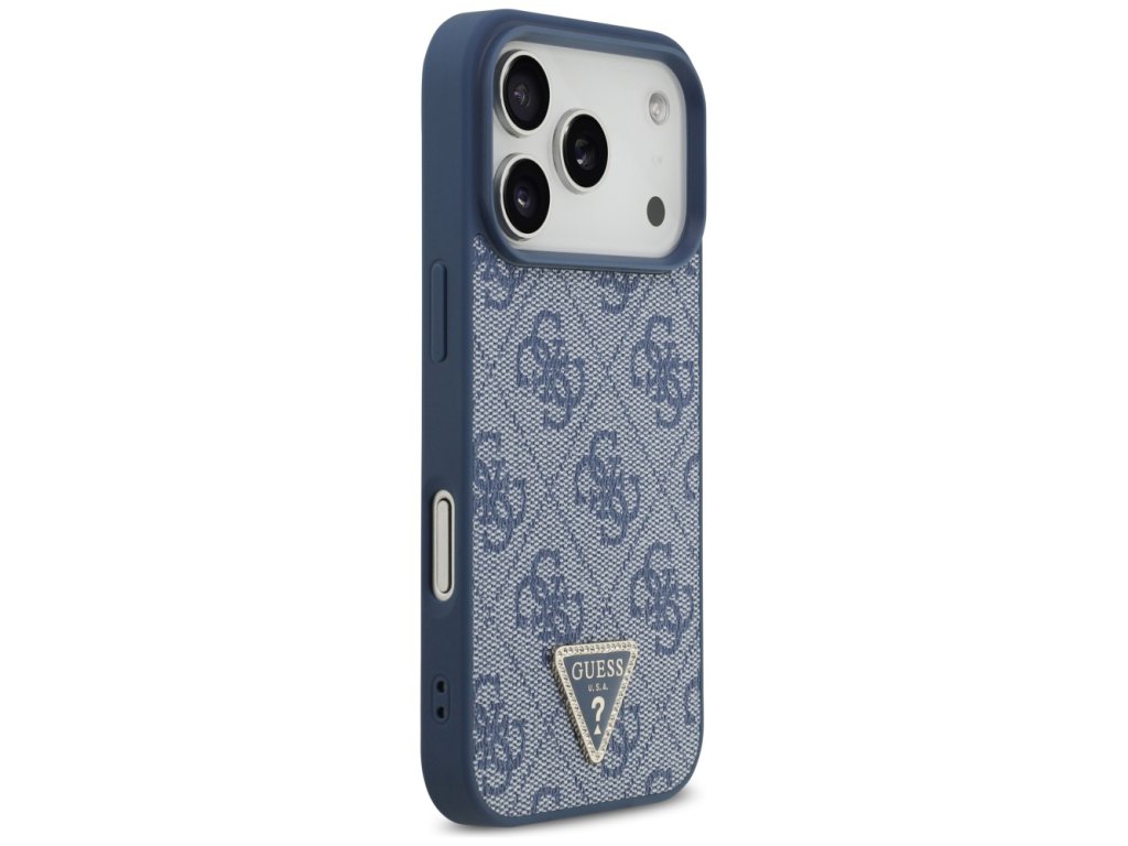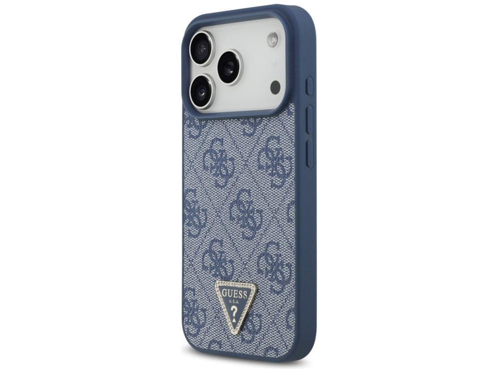 Guess – Leather 4G Triangle Strass MagSafe obal na iPhone 17 Pro Max – modrý